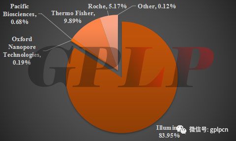 图三:全球基因测序仪市场规模情况(亿美元) 不过,在这一领域,其他进入者的机会渺茫: 目前在基因测序仪这个行业上游基本处于寡头垄断状态,80%的营收被巨头所垄断——目前全球范围内的测序服务企业主要有Illumina、Roche、LifeTech、华大基因以及贝瑞和康等公司,其中,前三个公司占据了超99%的市场。