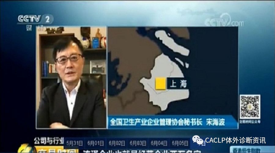 今天(6月6日)下午13:00左右,央视二套财经频道的《交易时间》栏目对全国卫生产业企业管理协会副会长、全国卫生产业企业管理协会医学检验产业分会会长(误为全国卫生产业企业管理协会秘书长)宋海波教授进行了有关我国体外诊断产业发展现状进行了联线专门采访,同时全国卫生产业企业管理协会医学检验产业分会副会长、迈克生物股份有限公司董事长唐勇先生及团队成员针对企业的核心产品、企业发展、研发力量等方面作谈了自己的见解。