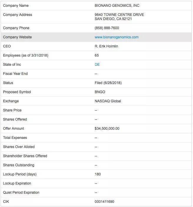 Bionano Genomics(以下简称Bionano)成立于2004年,是美国圣地亚哥的一家生物技术公司。其推出的光学图谱系统是唯一一种可以将自身系统产生的光学信号与测序数据进行联合组装和分析的物理图谱技术,对于获取高复杂区域重复序列信息、检测基因组结构变异有着独特的技术优势,正成为当前基因组研究的有力武器。 近日,这家技术型公司曝出“大动作”:Bionano公司已经申请了首次公开募股(IPO),计划募资3450万美元。 Bionano公司简介,图片来源NASDAQ 根据Bionano本月向美国证券交易委员会提交的初步募股书,这家位于美国圣地亚哥的生物技术公司计划出售一部分普通股(具体份额未定),预计最高认购总额为3450万美元。Bionano申请在美国纳斯达克(NASDAQ)全球市场上市,股票代码为“BNGO”。Bionano表示,通过此次发行的收益,以及销售收入和现有资金,将足以满足至少18个月的经营现金需求。此外,美国罗仕证券担任本次发行的独家簿记管理人,马克西姆集团为本次发行的首席管理人。 成立十几年来,Bionano公司致力于开发基因组光学图谱技术,并于2017年推出了最新款商业化基因组图谱绘制系统Saphyr。该系统基于纳米微流控芯片技术,其中的纳米通道(nanochannel)保证单个DNA分子以线性伸展状态流过,便于绘制基因组图谱。同时,这一高通量平台在结构变异检测上具有出色的灵敏度和特异性,可实现比短读取技术长百倍的基因组组装。 Saphyr系统,图片来源Bionano官网 在人类基因组学研究中,该平台主要应用于结构变异的发现。利用Bionano单分子光学图谱平台所读取的超长DNA分子的结构信息,可以全面检测基因组范围内的结构变异,包括缺失、重复、倒位、易位等,可用于遗传病和癌症的转化和临床研究。在非人类基因组学研究中,Saphyr系统可用于选择性育种、进化生物学和参考基因组的组装。单分子光学图谱可提供基因组宏观的框架支持,保证拼接组装结果的准确性和真实性,在重复序列区域,可以准确地确定重复片段拷贝数。通过Illumina或Pacbio测序,结合Bionano 图谱进行Scaffolding,能够使组装指标显著提升。 截至今年4月,该公司已持有10项美国专利授权和12项美国专利申请,以及在全球范围内授权和申请中的79项专利。Bionano表示,目前相关系统的安装数量已经超过90台,其中包括Saphyr系统和Saphyr系统的前身——Irys系统。 在本次的招股书中,Bionano方面表示,细胞遗传学研究市场为公司提供了很大的商机,未来公司有望售出约8500套Saphyr系统,其价值将达到21亿美元。同时,每套Saphyr系统每年还能带来7.5~15万美元的持续收益。Bionano公司估计,目前整个基因组分析市场的规模在27~34亿美元之间。 此外,Bionano公司还透露,2018年第一季度公司收益为170万美元,净亏损380万美元,摊薄每股亏损为1.16美元。第一季度研发费用为240万美元,销售和行政管理支出为290万美元。而2017年Bionano公司共收益950万美元,净亏损2340万美元,摊薄每股亏损为7.66美元。2017年研发费用为1200万美元,销售和行政管理支出为1410万美元。截至3月31日,该公司拥有现金和现金等价物为760万美元。Bionano表示,目前公司共有65名员工,包括28名销售、销售支持和市场人员,28名研发人员,4名制造与运营人员,5名普通及行政职员。其中57名员工在美国工作,其余8人驻派在不同地区。 在中国市场,Bionano公司曾于2016年8月与贝瑞基因签订了一份合作协议。基于该协议,贝瑞基因将在国内开发、出售和商业化运营一款体外诊断系统。此外,作为协议的一部分,Bionano还独家授权贝瑞基因,允许其将该产品用于获取国家食品药品监督管理总局(CFDA)注册,以及制造和出售IVD试剂盒及仪器。 参考文献: 1.Bionano Genomics Seeks to Raise $34.5M in IPO 2.https://www.nasdaq.com/markets/ipos/company/bionano-genomics-inc-756078-87261 |