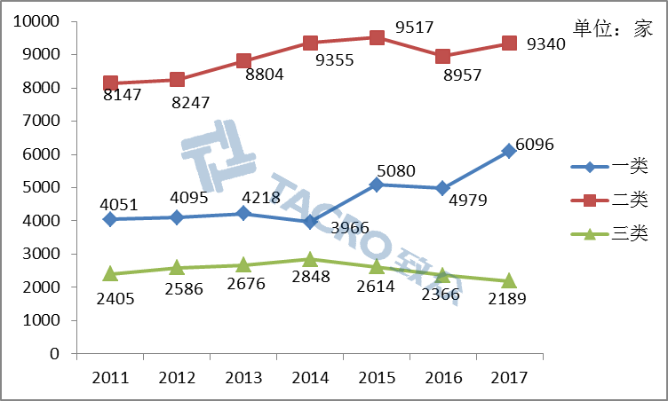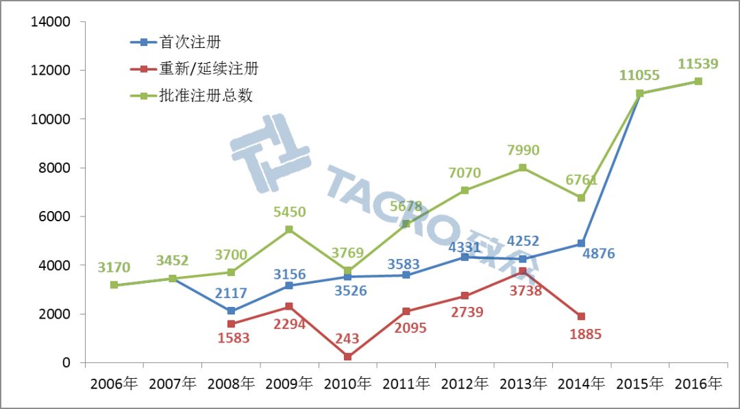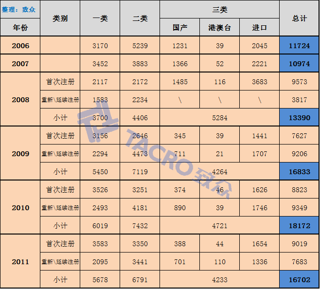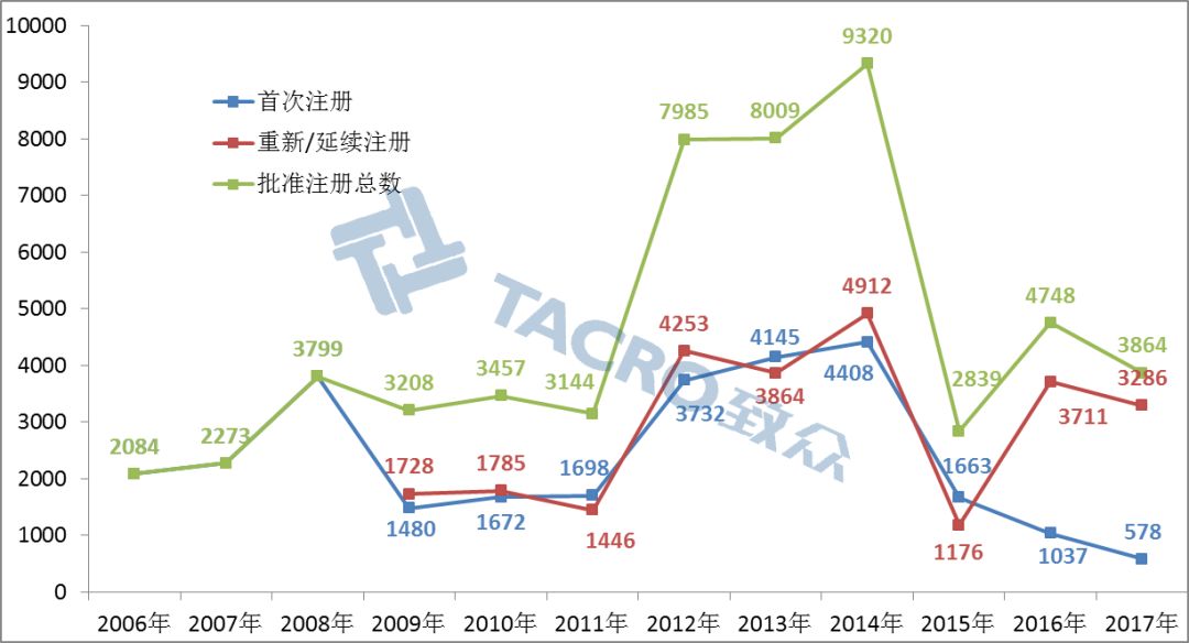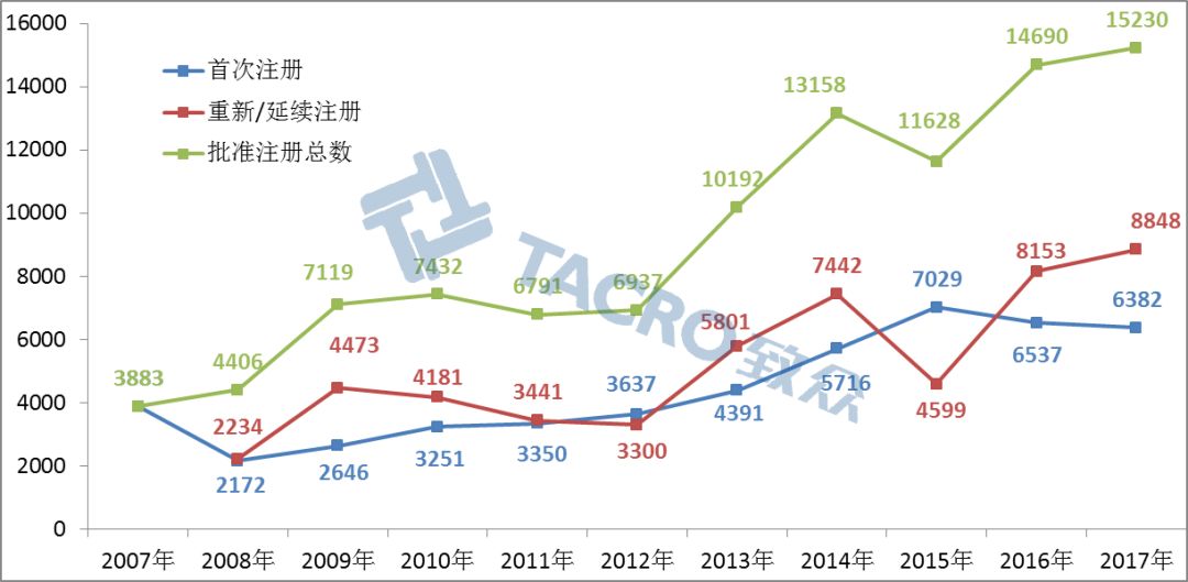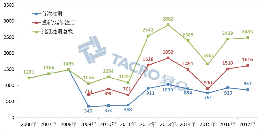 导读:2018年4月2日,国家食品药品监督管理总局发布了2017年度食品药品监管统计年报。小编将总局从第一期到最新一期的监管统计年报中的医疗器械注册数据做了统计分析,从注册量来看医械圈这几年的风云变化: 01 根据2017年统计年报的数据,除了未提及的第一类医疗器械注册情况外,全国共批准境内第二类医疗器械首次注册5993件,境内第三类医疗器械首次注册867件,进口(含港澳台)第二类医疗器械首次注册389件,进口(含港澳台)第三类医疗器械首次注册189件。批准境内第二类医疗器械延续注册7193件,境内第三类医疗器械延续注册1616件,进口(含港澳台)第二类医疗器械延续注册1655件,进口(含港澳台)第三类医疗器械延续注册1631件。境内第二类医疗器械许可事项变更4584件,境内第三类医疗器械许可事项变更489件,进口(含港澳台)第二类医疗器械许可事项变更555件,进口(含港澳台)第三类医疗器械许可事项变更591件。(见表一) 表一 2017年医疗器械注册情况表 截止今年,国家食品药品监督管理总局共发布了12期统计年报,数据对比如下(见表二): 表二 2006年至2016年监管统计年报数据对比表 02 从注册总数上来看,医疗器械市场总量大体呈稳步增长的趋势,只有2015年受新法规实施等因素的影响,出现了明显的下降。而2017年数据中未收录一类产品的信息,所以总数也有大幅下降(见图一)。 图一 医疗器械注册总数趋势图 03 一类医疗器械在这12年间的上市总数也呈总体上升的趋势,在2014年出现了注册数整体下滑后,于2015年显著增长(见图二)。我们知道,在2014年新法规实施后,一类医疗器械由原来的注册制改为现在的备案制,一类产品上市流程更简单,上市速度更快。受此类因素影响,2015年开始,一类产品的上市数量突飞猛进。 图二 一类医疗器械产品上市数量趋势图 04 二类医疗器械产品上市数量在这12年内略有波动,但整体还是呈现步步高升的大好趋势。同样是受新法规实施等影响,2015年的注册总量相比2014年下降了11.6%。但在2016年,企业渐渐适应新的法规监管态势,二类产品注册总量相比2015年猛增26%,2017年的数量也顺应着趋势稳步提升(见图三)。 图三 二类医疗器械产品上市数量趋势图 05 相比一类和二类产品,三类医疗器械产品上市数量波动明显,2012年三类产品注册总数相比2011年翻倍猛增,又于2014年开始连续两年出现回落,这与2012至2013年开始电磁兼容等新规逐步实施导至部分三类产品的注册受到较大影响有关。而前年三类产品注册总量增长了近一半(见图四)。 图四 三类医疗器械产品上市数量趋势图 06 进口产品近12年的上市总量同样波动剧烈,从图五可以看到,2012年进口产品注册总数相比2011年剧增154%。2014年,新法规对进口医疗器械的临床评价提出了新要求等因素导至进口医疗器械的上市一时受到较大影响,在2015年锐减69.5%。 图五 进口(含港澳台)医疗器械产品上市数量趋势图 07 单看首次注册数量,2009年后一直稳步增长,2016年略有回落,2017年由于数据不完整而成为12年间数据最低谷(见图六)。 图六 首次注册总数趋势图 08 重新/延续注册数量起伏较大,新法规实施后的2015年,重新/延续注册总数锐减57.6%(见图七)。 图七 重新/延续注册总数趋势图(仅统计2009年至2016年数据) 09 从一、二、三类产品上市数占总产品上市数量的比例分布来看,一类产品占比在2015年由21.38%激增至40.67%;二类产品占比在2009年出现剧增,而又于2012年由40.66%锐减到28.28%;三类产品占比变动剧烈,分别在2009年和2015年锐减,在2012年剧增(见图八)。 图八 一、二、三类产品上市数占产品上市总数比例趋势图 10 进口产品上市数占总产品上市数量的比例同样波动明显,在2008年和2012年增势明显,但2009年和2015年的占比落幅较大。 图九 进口产品上市数占产品上市总数比例趋势图 11 2011年至2017年的食品药品监管统计年报中,还发布了医疗器械生产经营企业的许可情况。以下是7年间生产与经营企业许可情况汇总表(见表3、表4): 表三 2011-2017年医疗器械生产企业许可情况表 表四 2011-2017年医疗器械经营企业许可情况表 7年间,一类、二类生产企业数量大体上在不断平稳增加,三类医疗器械生产企业数量由于新法规的影响,从2014年开始呈下降趋势(见图十): 图十 一、二、三类生产企业数量变化趋势图 经营企业的数量在2011-2015年一直稳定增长18万家左右,同样由于14年新法规的发布,2016年的经营企业增长数量猛然翻倍至33万之多,而2017年则更是飙升至41万家(见图十一): 图十一 经营企业数量变化趋势图 本文系致众原创,未经授权谢绝转载,否则为侵权,致众将采取有效手段维护著作权。 数据来源:CFDA |