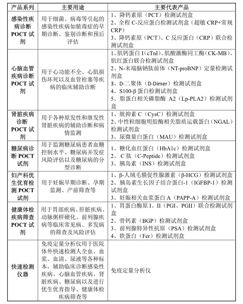 明德生物成立于2008年,总部位于武汉,目前拥有自主产品 36 项检测试剂及配套检测仪,检测项目覆盖 心脑血管疾病、感染疾病、肾病、糖尿病、健康体检和妇产科等多个领域,拥有CFDA注册的POCT快速诊断试剂产品30余项,实现PCT降钙素原、S100-β蛋白全血床旁快速检测。
