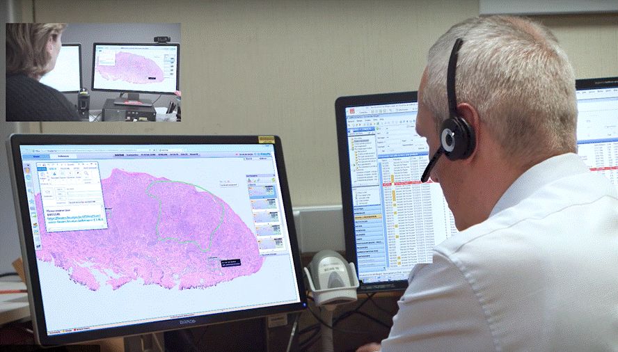 ▲ TissueMark软件的图像,识别数字化图像的区域(来源:飞利浦网站) (二)Inspirata Inspirata成立于2014年 ,总部位于美国佛罗里达州,是一家未上市的股份有限公司,主要提供数字化病理解决方案以及自动化病理工作流程服务[3],产品包括用于优化肿瘤检测、诊断和治疗方案的软件PathologyNEXT,以及一个多屏幕配置,支持查看、存储和管理图像信息的数字病理学软件Digital Pathology Cockpit。此外还有辅助诊断工具和决策支持工具mitoSēK™和histoSēK™ 。 mitoSēK™其实是个一步式的放大工具,可以识别“所有存在高有丝分裂可能性的图像”,即分裂细胞,这些细胞很可能是恶性生长的细胞。它旨在作为一种工具,通过即时突出显示潜在有问题的扫描区域,使病理学家可以有针对性的阅片并且不必手动执行此操作,无需逐步放大,从而节省时间。 ▲ 图片来源:Inspirata histoSēK™则可以自动识别和量化目标组织学区域,即可能含有有害生长的扫描载玻片区域,并且拥有显微切割,坏死区域量化或肿瘤负荷测量功能。