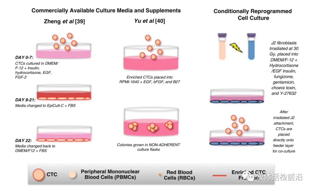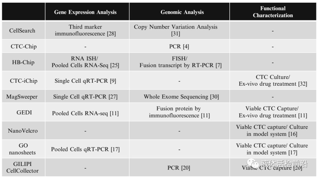 图7 CTC的体外操作 在第一部分第二章节中详细的介绍了CTC的捕获分离方法,总共介绍了几十种代表性的方法;另外还详细的介绍了各种方法在乳腺癌,结直肠癌,前列腺癌,肺癌,黑色素瘤,卵巢癌等各癌症中的临床应用。相信通过阅读这一章节会对CTC目前的检测技术有一个深入的了解,对每一种技术的优缺点以及临床应用的条件会有全新的认识。