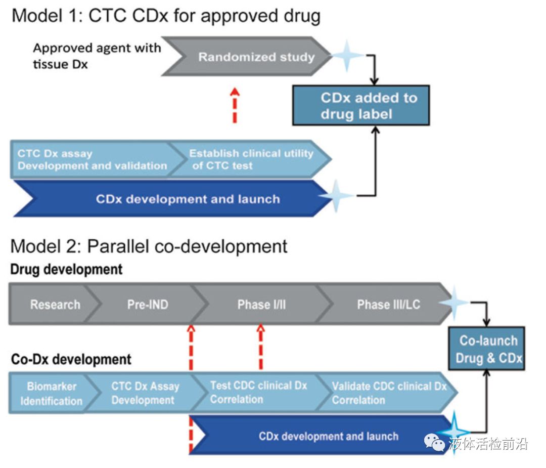 第四部分是CTC的临床应用价值介绍。目前为止,CTC在乳腺癌中的临床研究循证医学证据相对较多,这与之前强生公司的CellSearch在乳腺癌中的获批推广应用有关。虽然CTC的临床预后价值是目前研究最为深入的临床应用方向之一,但CTC的真正价值不应仅局限在其预后价值,还应在指导用药、实时监测复发监测等方面有所突破。这就需要基础研究科研工作者和企业联合探索开展研究探索,不断丰富完善CTC的临床价值,探索出一条具有中国特色的精准医疗临床应用之路。 图8 著名的SWOG0500试验方案设计 图9 Codevelopment of drug s and CTC companion diagnostics.