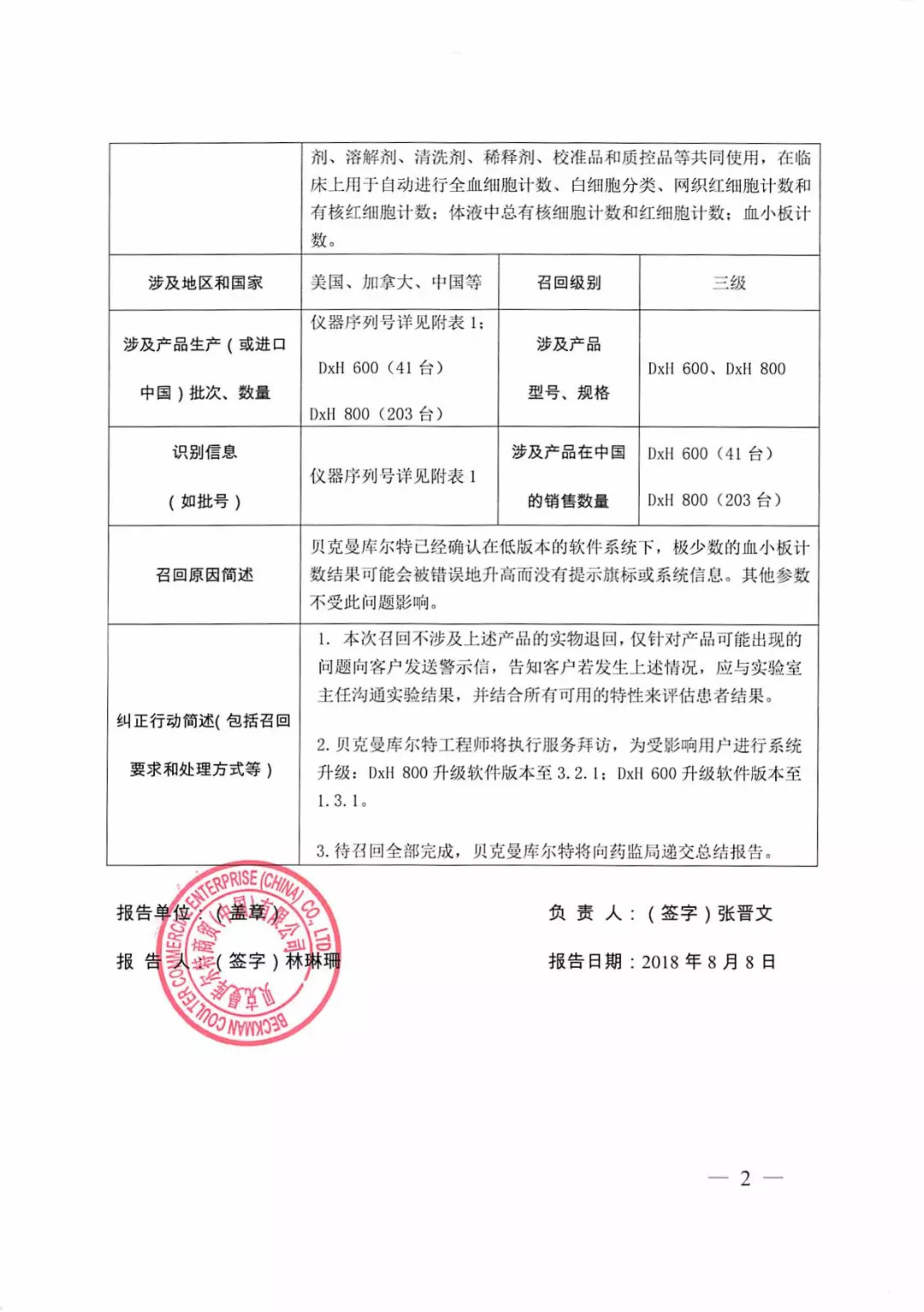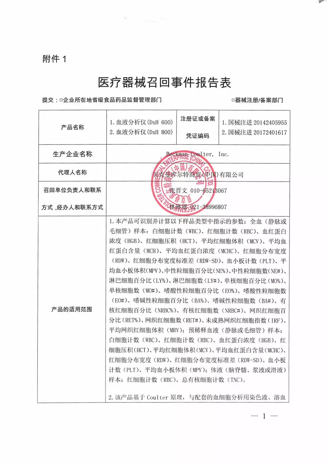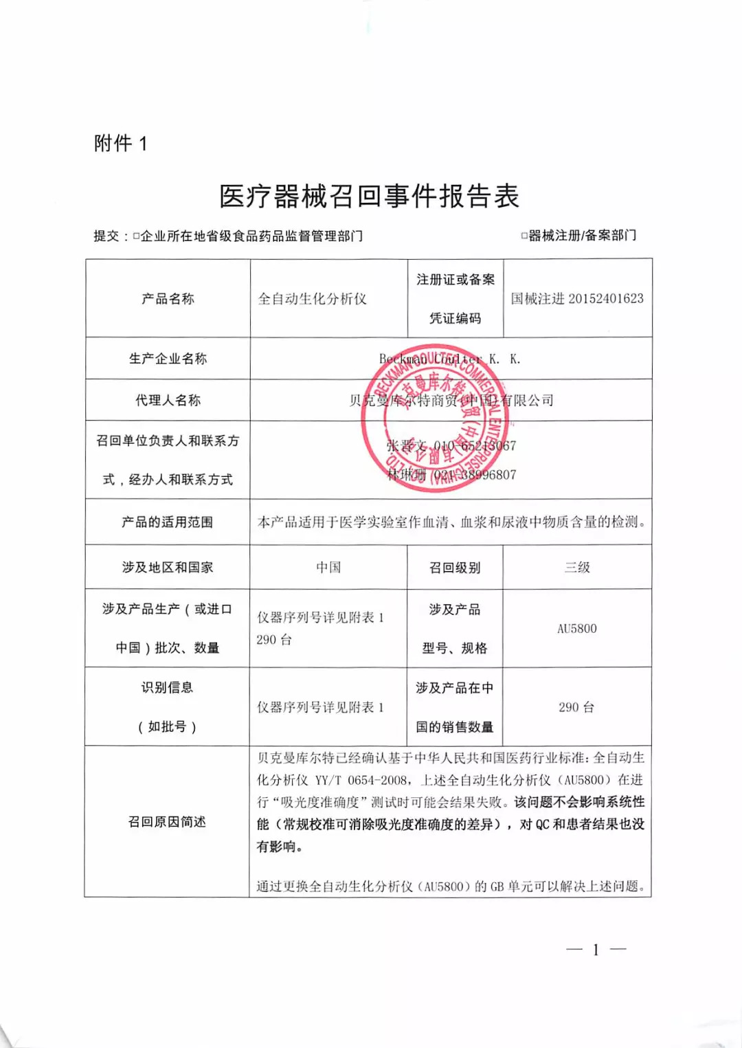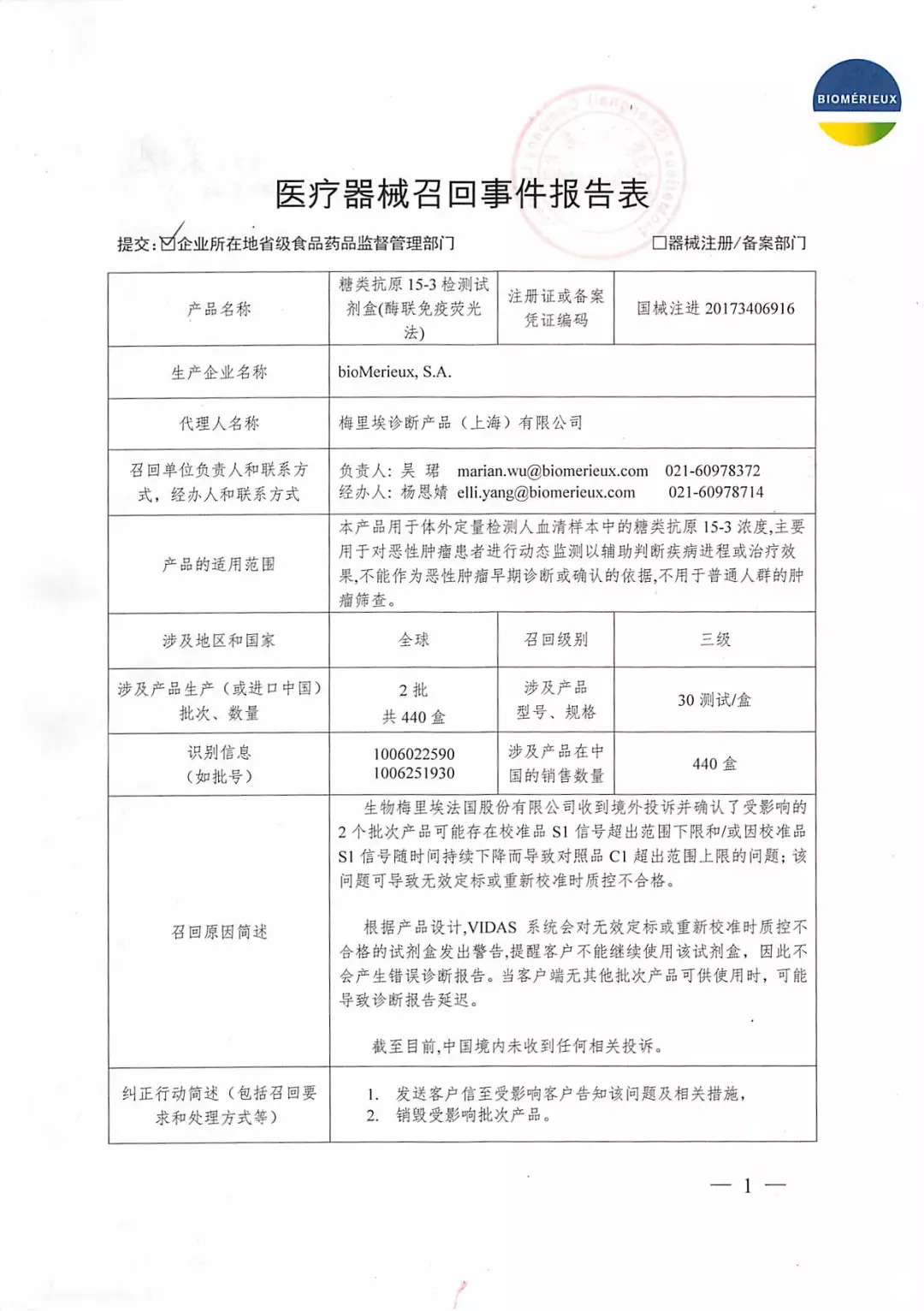 国产数量在增加! 召回意识在提高! 又到月底了,又有一大批医疗器械被召回!其中含不少IVD设备和试剂,先给大家来个预告:(想了解详情的可直接滑到文末查看具体召回文件) 8月28日一共召回35155件IVD产品,涉及企业包括梅里埃,贝克曼,索灵诊断和伯乐生命。其中索灵诊断一次性召回27080盒试剂盒! 回顾八月份,一共有12个企业的294297件IVD产品进行了主动召回,奥森多医疗器械贸易有限公司于8月14日出现了一个二级召回,并在同一天出现了一次性召回232562个试剂盒,单次召回数量最多! 在过去的几年中,被公布出来的医疗器械召回信息中,涉及的绝大部分是外资企业,但自去年开始,涉及本土医疗器械企业的召回信息开始不断出现,并且有增加趋势: 相比较过去的几个月份,七月份、五月份、六月份、四月份和一月份分别出现一个本土企业的IVD产品被主动召回。八月份国内IVD企业主动召回的有上海科华,江苏维尔以及安徽同致生物三个企业。 7月20日上海食药监局发布的该市医疗器械企业召回报告中恰恰也预示了这一点:国产召回数量在增加! 所以小Q整理八月份的召回时看到了这三个国产IVD企业感到甚是欣慰呢! 召回是一个企业负责任的态度,企业主动把风险降到最低,我们应该对这些企业提出表扬! 点击以下图片可查看之前的召回文章: 以下是昨日(8月28日)的具体召回文件: 梅里埃诊断产品(上海)有限公司对糖类抗原15-3检测试剂盒(酶联免疫荧光法)主动召回 梅里埃诊断产品(上海)有限公司报告,涉及产品的两个批次可能存在校准品S1信号超出范围下限和/或因校准品S1信号随时间持续下降而导至对照品C1超出范围上限的问题,该问题可导至无效定标或重新校准时质控不合格。梅里埃诊断产品(上海)有限公司对糖类抗原15-3检测试剂盒(酶联免疫荧光法)(注册证号:国械注进20173406916)主动召回。 召回级别为三级。涉及产品在中国的销售数量为:440盒。 1.贝克曼库尔特商贸(中国)有限公司对血液分析仪主动召回 贝克曼库尔特商贸(中国)有限公司报告,涉及产品在低版本的软件系统下,极少数的血小板计数结果可能会被错误地升高。贝克曼库尔特商贸(中国)有限公司对血液分析仪(注册证号:国械注进20142405955、国械注进20172401617)主动召回。 召回级别为三级。涉及产品在中国的销售数量为:244台。 2.贝克曼库尔特商贸(中国)有限公司对全自动生化分析仪主动召回 贝克曼库尔特商贸(中国)有限公司报告,涉及产品特定批次的全自动生化分析仪在进行“吸光度准确度”测试时可能会结果失败。贝克曼库尔特商贸(中国)有限公司对全自动生化分析仪(注册证号:国械注进20152401623)主动召回。 召回级别为三级。涉及产品在中国的销售数量为:290台。 索灵诊断医疗设备(上海)有限公司对人类免疫缺陷病毒抗原及抗体联合检测试剂盒(化学发光法)等产品主动召回 索灵诊断医疗设备(上海)有限公司报告,生物素/链霉亲和素复合物制造的体外诊断试剂盒试验在检测样本时可能存在生物素干扰。索灵诊断医疗设备(上海)有限公司对人类免疫缺陷病毒抗原及抗体联合检测试剂盒(化学发光法)(注册证号:国械注进20173402169)、丙型肝炎病毒抗体检测试剂盒(化学发光法)(注册证号:国械注进20173401352)、乙型肝炎病毒表面抗原检测试剂盒(化学发光法)(注册证号:国械注进20163402308)、乙型肝炎病毒表面抗原测定试剂盒(化学发光免疫分析法)(注册证号:国械注进20173402173)、肾素测定试剂盒(化学发光免疫分析法)(注册证号:国械注进20172401731)主动召回。 召回级别为三级。涉及产品在中国的销售数量为:27080盒。 伯乐生命医学产品(上海)有限公司对液体脂类质控品主动召回 伯乐生命医学产品(上海)有限公司报告,涉及产品的特定批次产品的中文标签及说明书使用了代理人旧住所地址。伯乐生命医学产品(上海)有限公司对液体脂类质控品(注册证号:国械注进20142405166)主动召回。 召回级别为三级。涉及产品在中国的销售数量为:7101盒。 |