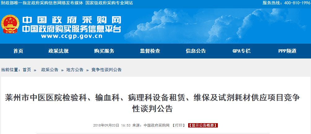 本周一(9月3日),山东省三甲医院莱州市中医医院在中国政府采购网上发布了关于检验科、输血科、病理科设备租赁、维保及试剂耗材供应项目竞争性谈判公告。 项目采用一个标包进行采购,采购内容为:莱州市中医医院检验科、输血科、病理科设备更新租赁、维保及试剂耗材供应。 包括: (1)莱州市中医医院检验科、输血科、病理科现有设备维保; (2)莱州市中医医院检验科、输血科、病理科合同期内,提供满足日常应用及业务开展的设备更新租赁及维保; (3)莱州市中医医院检验科、输血科、病理科设备所需及日常运行中全部试剂、耗材供货及配送; (4)配合莱州市中医医院检验科、输血科、病理科新项目的开展,提供新项目开展所需的设备租赁服务及试剂、耗材配送; (5)建设莱州市中医医院区域医学检验中心; (6)提供检验试剂、耗材的库存管理软件,负责医院区域检验中心试剂冷库建设,并承担相关费用; (7)实验室内部改造服务:根据ISO15189要求,对检验科、输血科、病理科内部布局及基础设施进行改造,进行流程优化,承担改造所需的材料费及人工费; (8)协助医院以IOS15189为标准建立检测质量及技术管理体系,并通过ISO15189认可等。 公告表示:合同期限为八年!项目采购预算为合同期限内莱州市中医医院检验科、病理科、输血科业务收入的35%! 这是一种典型的打包式经营!这种模式下供应商通过签订长时间、广范围的耗材试剂供应合同,不剥离科室的人员与设备,通过以量换价的方式实现降价。价格整体降幅估计在20-30%。合同的时间往往在5-8年,一般除了耗材试剂的提供,供应商还需要按照医院的需求铺设设备,而且在合约期完成后会成为医院检验科的财产。 打包式经营实现了打包商对终端的强控制!而打包商通过集中采购和集中供货,能从厂家拿到更优惠的价格,节省巨额中间环节费用,从而使医院获得比自己直接采购更低的价格! 此次采购若有打包商成功中标的话,意味着国内又有一家大三甲被打包,而且是三个科室联合被打包! 此外,区域检验中心的建设更是医院对医改号召的响应!医联体是近年来中国医疗改革最大的春风,而区域检验中心作为医联体的重要组成部分,也是文件中大力鼓励建设的几个中心之一。莱州市中医医院区域医学检验中心若建成,将实现借助第三方检验公司的标准化和专业化管理,完成检测结果互认,共享区域内优质专家团队,迅速提高专业水平;同时也将减少很多重复设置,达到资源合理配置。 包括检验科在内的科室需要仪器更新换代以应对越来越多的患者,IVD流通、服务、生产厂家都在通过打包模式这一新兴业态快速地切入,以保证自身在行业商业模式快速变革的过程中占据优势。打包模式的迅速扩张,很可能改变未来的整个IVD竞争格局。当超过一半的医院被打包之后,产品线不全、无法切入打包业务的企业很可能面临被整合或是退出市场的命运。对于此次打包采购,我们将密切关注后续发展,大家可以期待一下到底是哪家企业最终夺魁! |