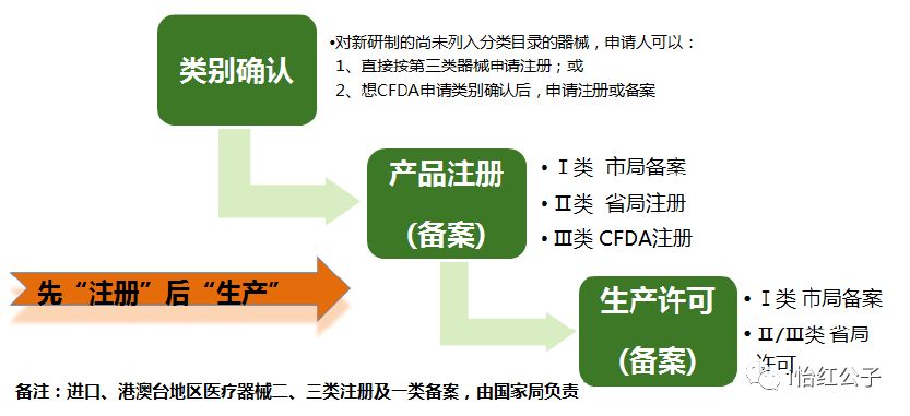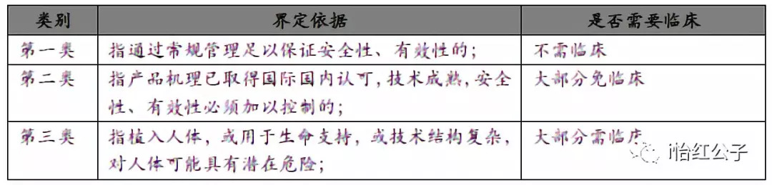 图表6.诺沃兰生物科技建设的“医疗器械现行法规库” 和“法规信息跟踪与分析服务RAT” 资料来源:公司官网 2.2、医疗器械分类按照原国家食品药品监督管理局(CFDA)2014年颁布的《医疗器械注册管理办法》,对医疗器械按照安全性的原则分为三类,各类简要区别如下[1]: 图表7.医疗器械分类简要标准 资料来源:网络公开信息 在产品安全性分级的情况下,国家在医疗器械的注册、生产上也实行分级管理制度。目前,国家对第一类医疗器械实行备案管理。第二类、第三类医疗器械实行注册管理,各类医疗器械的生产和注册管理对应如下: