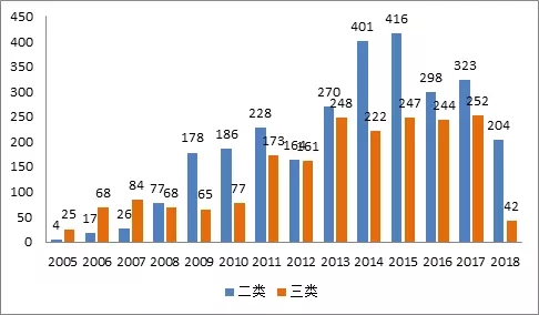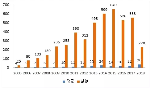 图1:国产化学发光仪器和试剂历年注册数量