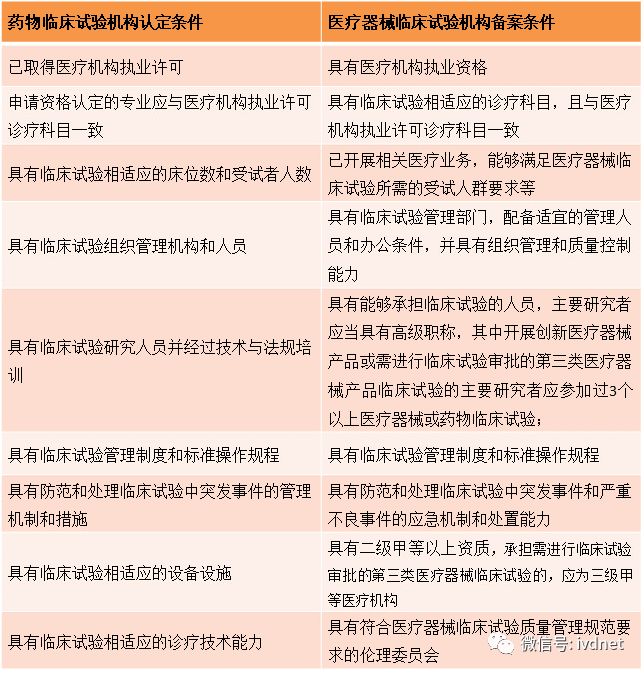 表1 药物临床试验机构认定条件和医疗器械临床试验机构备案条件对比