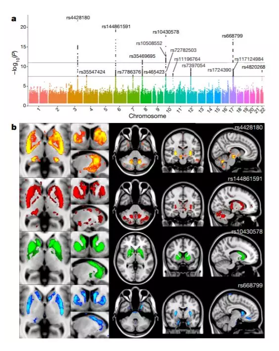 基因组上的少数几个位点,就能影响大脑脑区的体积(图片来源:参考资料[2]) 第二篇研究论文正是这些大数据带来的结果。研究人员们分析了8400多名志愿者的大脑图像,并将大脑结构与功能与这些志愿者的遗传信息进行了联系。他们发现,不少脑区的体积受到了遗传的影响,这也解释了为何基因组中的一些片段,会增加精神分裂症的风险。 总结 这些令人兴奋的成就,只是“生物银行”诸多成就的一个开端。值得一提的是,去年12月,中国也启动了国家级别的基因组计划,绘制国人的精细基因组图谱。在这个基础之上,我们也完全可以期待,中国的“生物银行”会在不久后开始建立。对于中国老百姓来说,来自中国人的数据,无疑能提供更为准确和相关的精准医学建议。其中的重要性不言而喻。在全球精准医学的赛道上,中国正在加速前行。 |