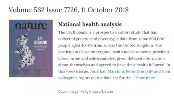 对于精准医学来说,今天可谓是具有历史性的一天:英国在今日正式公布了“生物银行”(UK Biobank)的数据,并通过一项万人研究,向我们揭示了生物大数据对于精准医学的极高价值。这一里程碑式的事件,也登上了最新一期《自然》杂志的封面。
