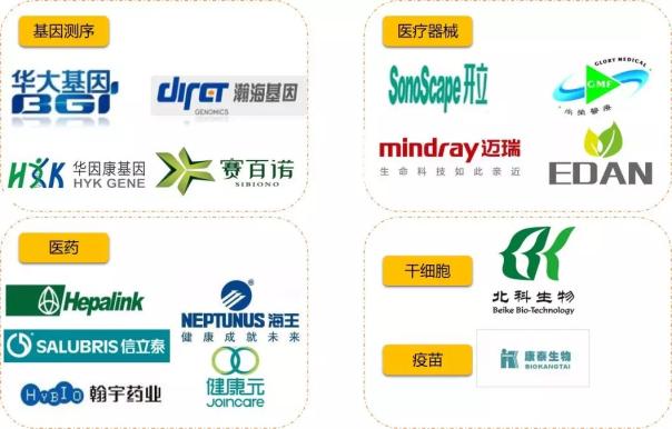 注:火石创造根据公开资料整理 三、产业链:在基因检测、医学影像等细分领域具有领先优势 目前,深圳市已基本形成较为完整的生物医药产业链,在基因检测、生物信息、医学影像等细分领域具有领先优势,并培育了生物疫苗、干细胞等特色细分领域。在细分领域已涌现出华大基因、迈瑞医疗、海王生物、海普瑞、翰宇药业、北科生物等一批国家级龙头企业和创新型企业。