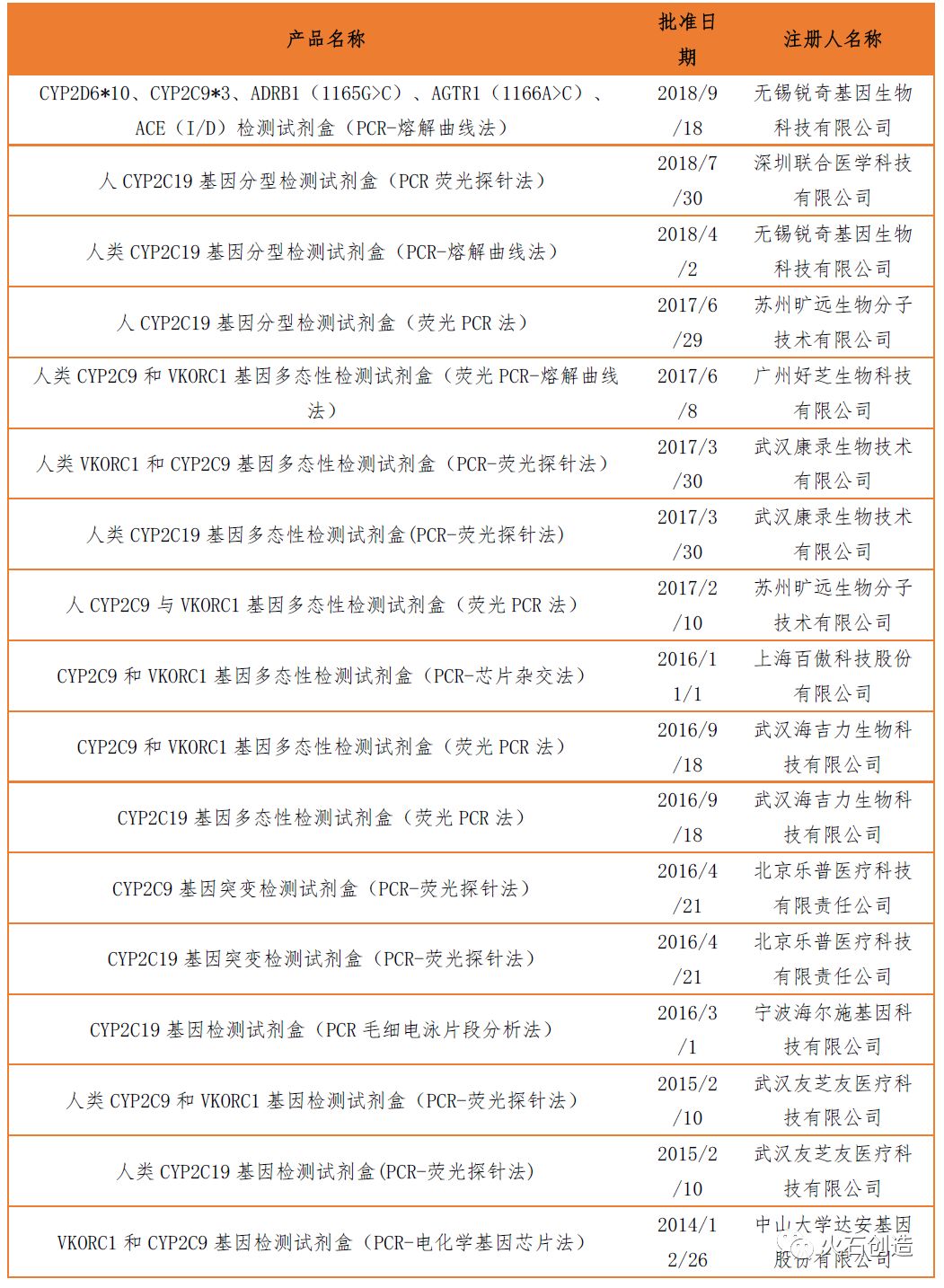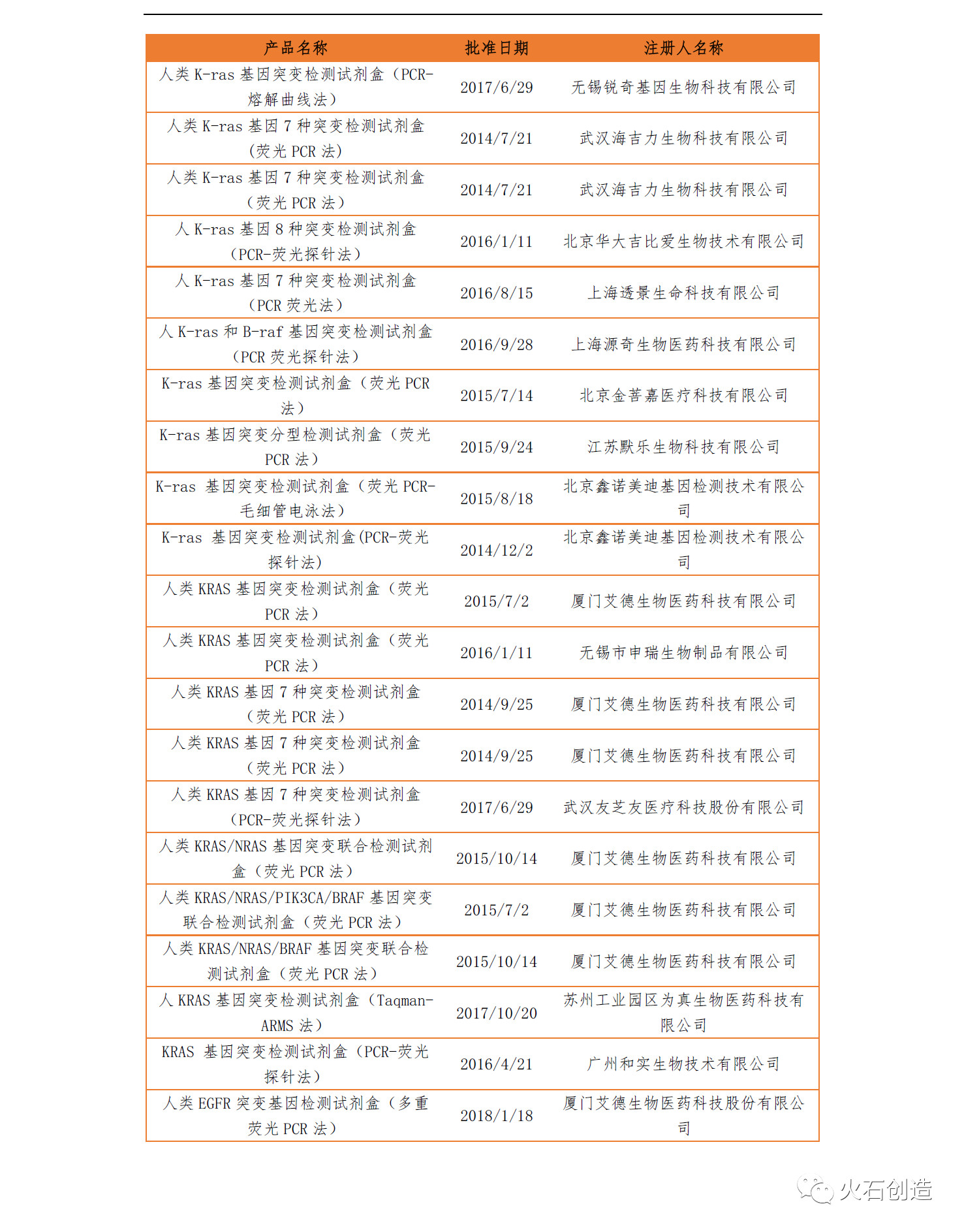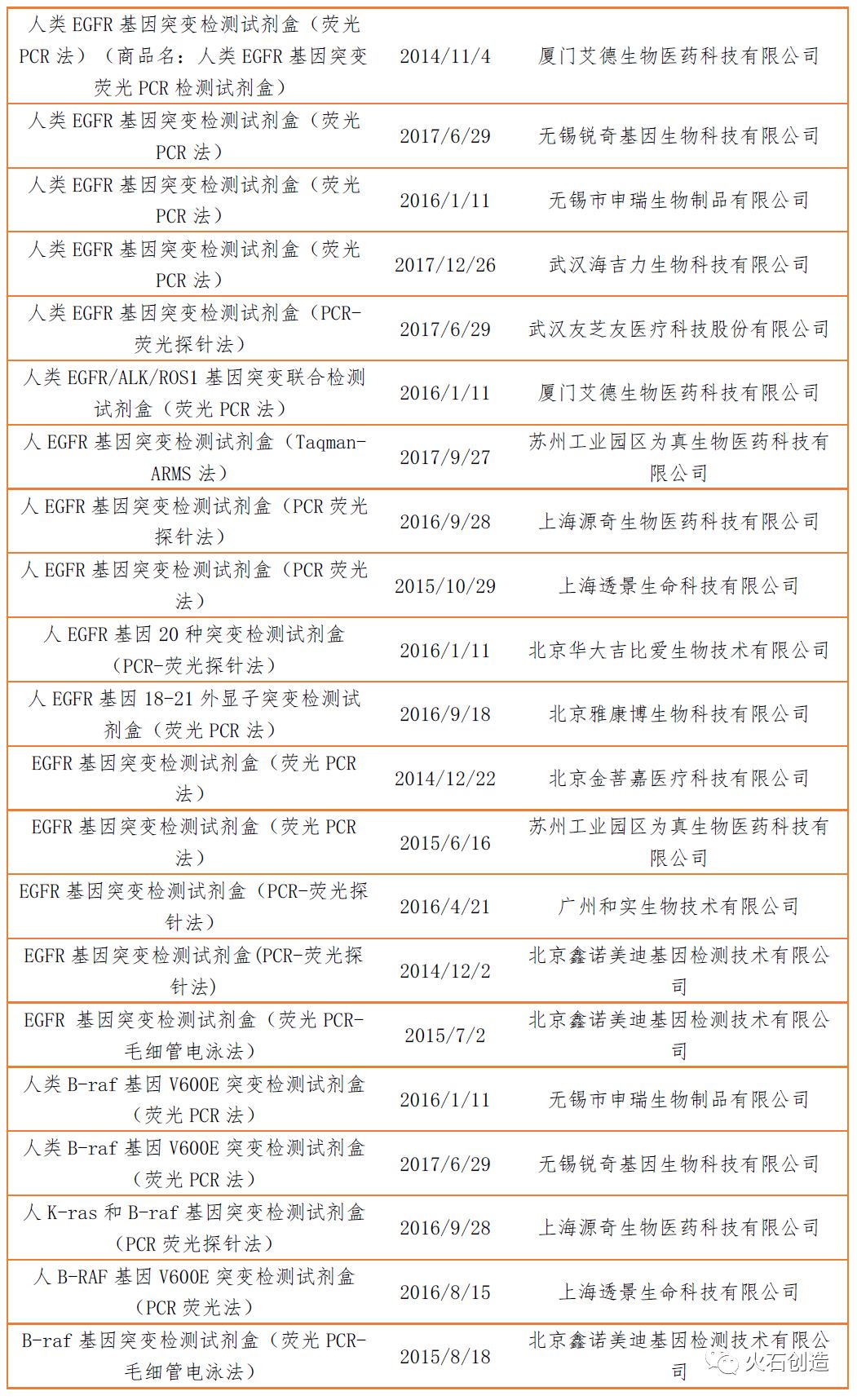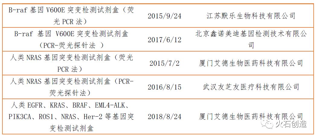 表:目前基于PCR技术的肿瘤基因检测试剂盒