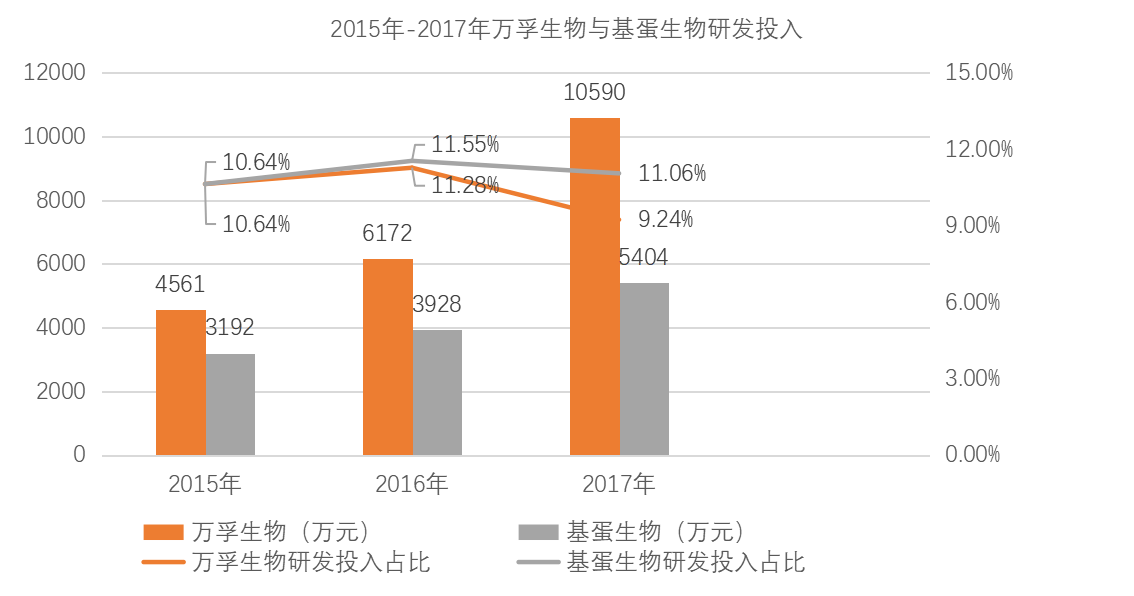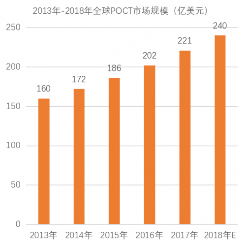 POCT行业处于高速增长阶段。根据Boston Biomedical Consultants, inc 的数据,全球体外诊断市场增长稳定,2019年将达到689亿美元,年均增速约为4%。作为体外诊断热门领域,POCT占比逐年增长,根据 Rncos 2014 年发布的报告,2013 年全球 POCT 市场规模已达 160 亿美元, 2018 年预计达到 240 亿美元,年复合增长率8%,显著超过整个体外诊断行业的平均增速。 我国 POCT 市场起步较晚,市场规模较小,但市场潜力巨大,具有全球最快的年复合增长率。2013 年我国 POCT市场规模为 4.8亿美元。随着医改的推进和分级诊疗的落地,我国 POCT 市场未来几年将保持20%-25%的年均复合增长率,2018 年预计达到 14.3 亿美元。目前国内市场主要由外资企业主导,其中进口、国产占比大约为3:2,罗氏和强生占据40%左右市场份额,而国产市场基本被万孚、基蛋、明德、奥普、国赛、普门、热景七家公司所瓜分。随着国内技术的不断提升,国产化进程有望进一步提高。 数据来源:Global Point-of-Care Diagnostics Market Outlook 2018 数据来源:Global Point-of-Care Diagnostics Market Outlook 2018 数据来源:广证恒生 国产企业的领跑者。万孚生物与基蛋生物作为POCT的国产龙头企业,2015年-2017年营业收入持续高速增长。万孚生物2017年度营业收入同比增长109.28%,扣非净利润同比增长45.83%;基蛋生物2017年度营业收入同比增长32.37%,扣非净利润同比增长35.32%。 数据来源:公司年报 数据来源:公司年报 龙头企业成长有迹可循。尽管万孚生物与基蛋生物两家企业在产品结构与技术平台等方面具有较大的差异,但纵观两者各自发展阶段,其成长逻辑离不开自主研发和不同细分领域的并购以及营销渠道的扩充。 坚持自主创新,高强度研发投入。万孚生物与基蛋生物近几年的研发投入保持在10%左右,在整个IVD行业的生产企业中处于领先。 万孚生物于2011年获国家发改委批准建设“自检型快速诊断国家地方联合工程实验室”,促进彩色微球、诊断用单克隆抗体及基因工程重组抗原技术在快速检测方面的应用;其“疟疾、血吸虫病等重大寄生虫病防治关键技术的建立及其应用”获得2017年度国家科学进步奖二等奖。 基蛋生物建有省级企业研发中心,掌握了多项原材料制备技术、免疫层析标记技术、试剂条抗基质干扰技术、多色荧光免疫层析蛋白芯片技术、多试剂条存储及自动加载技术、转盘试剂卡缓存和时序分配算法、自动化样本前处理和加样技术等多项体外诊断产品生产技术。根据天眼查数据,万孚生物目前共有227项专利授权和 16项软件著作权,基蛋生物目前共有109项专利授权和 2项软件著作权。 自主研发带来高毛利率,如心脏标志物试剂原料曾长期被国外企业垄断,基蛋生物研发突破产品核心原料后,心脏标志物检测试剂毛利率高达93%。万孚生物的心脏标志物试剂的毛利率也达到了85%。 数据来源:公司年报 优势领域差异化发展, 布局丰富产品线。万孚生物产品主要集中在妊娠检测、传染病检测、毒品(药物滥用)检测、慢性病检测等领域,根据2018年上半年度数据,传染病检测营业收入20405.77万元,占比25.74%,预计全年约占中国市场份额的4%, 慢性病检测营业收入18350.3万元,占比23.15%,预计全年约占中国市场份额的3.6%。基蛋生物产品主要集中在心血管疾病检测、炎症检测、肾脏检测等领域,其中心脏标志物检测产品约占中国市场份额的12%,