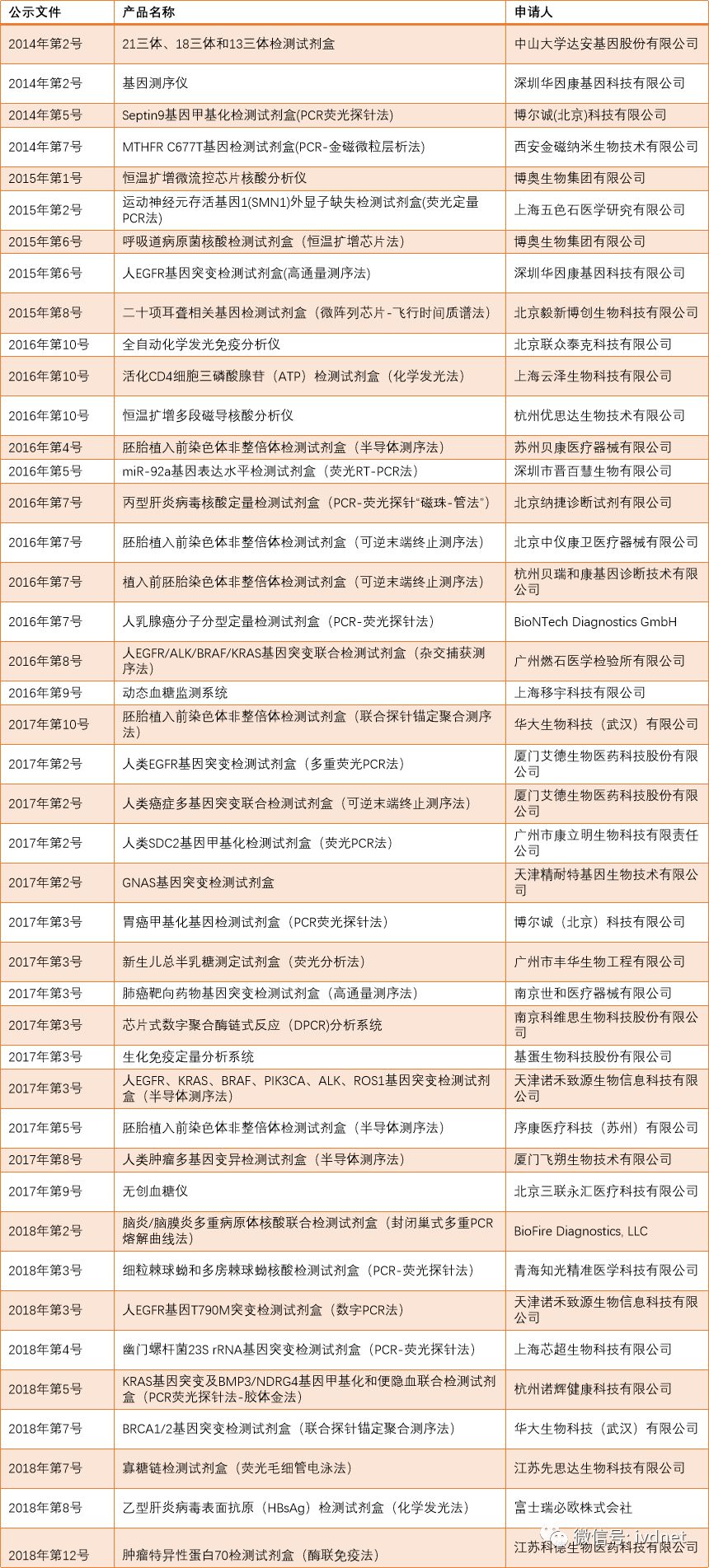 附:全部IVD领域创新产品清单
