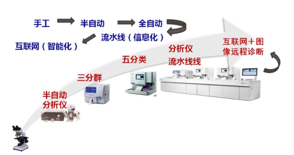以上各学科发展的进程说明了通过科学技术、优化疗程、智能化都能达到最终检验的结果。 在检验领域最费时费力的是显微镜底下的事物,如白血病和感染怎么鉴别?寄生虫如何识别?各个体液里面的主流细胞怎么认识?细菌、真菌的鉴别?全部要靠形态学。可是现在的检验人员技术完成不了现代临床的需要,通过人工智能的方法能解决一部分的问题。
