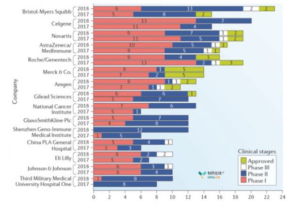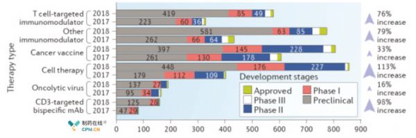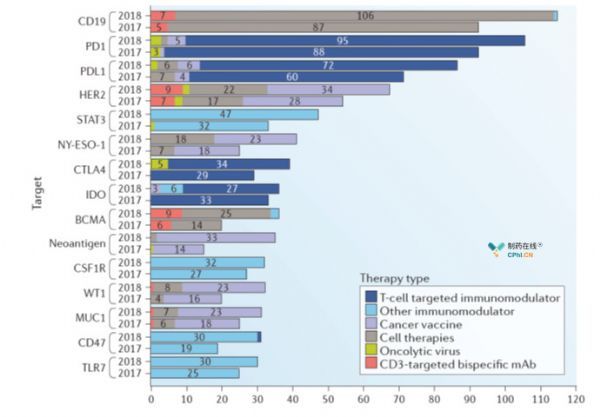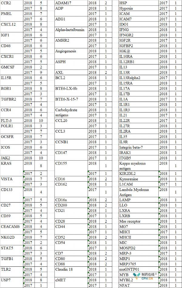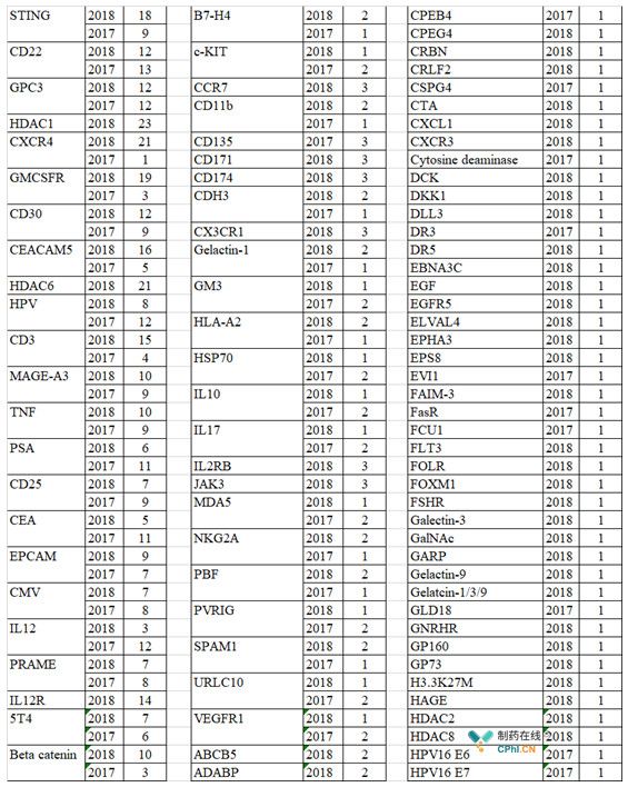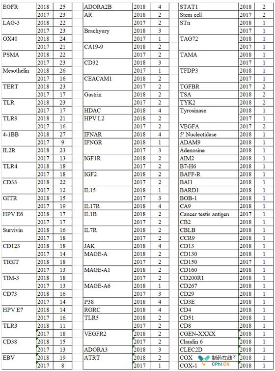 10月19日,纽约癌症研究所(CRI,Cancer Research Institute)再次公布《全球肿瘤免疫治疗发展趋势》调查报告,发表于《Nature Reviews Drug Discovery》期刊。在1年内,肿瘤免疫治疗全球项目数增加67%,靶点数增加50%,有临床开发项目的企业与机构数增加42%,肿瘤免疫治疗蓬勃发展。 纽约癌症研究所作为一家致力于癌症免疫治疗研究超过65年的非营利组织,曾在2017年在对全球肿瘤免疫治疗现状进行了全面调查(Ann.Oncol.29,84-89;2017)。时隔一年,再次开展了大规模调查。在本报告中,研究小组对这两项调查进行了比较,并对全球肿瘤免疫治疗趋势进行了纵向分析。 趋势一:全球肿瘤免疫研发项目增长迅速,达67% 过去一年(2017年9月--2018年9月),全球免疫治疗的研发项目增加了67%(2031项(2017年)vs 3394项(2018年))。根据不同的作用机制可将免疫治疗药物分为六类: 靶向T细胞免疫调节剂(例如,PD1或CTLA4的单克隆抗体); 其他免疫调节剂(例如,TLR或干扰素-α/β受体1(IFNAR1)的激动剂); 肿瘤疫苗(例如,卡介苗(BCG)疫苗); 细胞疗法(例如,嵌合抗原受体(CAR)或T细胞受体(TCR)T细胞疗法); 溶瘤病毒(例如,T-vec); CD3靶向双特异性抗体(例如,blinatumomab)。 在六大不同类别免疫疗法中,细胞治疗研发增速最快,达到113%,而溶瘤病毒只增加了16%,增长缓慢。同时,细胞疗法已超过肿瘤疫苗,成为最大的肿瘤免疫法,在研项目数达到864个,占所有肿瘤免疫项目的25%。此外,临床前药物增加97%(1067 vs 2107),临床阶段药物增长34%(964 vs 1287),表明基础和临床前创新研究不断增加。 图1 免疫疗法项目趋势(截止2018年9月) 趋势二:417个靶点,靶点更多,研发集中度有所降低 目前全球肿瘤免疫治疗项目中有417个靶点。过去一年,免疫治疗靶点数增加50%(附表)。有趣的是,2017年一半的研发项目集中在前23个靶点,但2018年,一半的研发项目集中在前48个热门靶点(附表)。通常,一个靶点有药物获批,相应的研发项目数将会减少(图2)。例如,尽管2018年细胞疗法数量增加了113%,但CD19靶向细胞疗法仅增加了37%。相反,靶向新抗原的药物(通过个体患者肿瘤的生物信息学分析确定的靶标)的在研数量在1年内增加了133%。肿瘤免疫治疗靶点数量的增加可能导至未来更多免疫疗法获批。值得注意的是,非特异性肿瘤相关抗原(TAA)药物实际数量是减少的,这表明该领域正朝着更精确的方向发展(图3)。 图2 免疫疗法top15靶点 图3 非特异性肿瘤相关抗原项目趋势 趋势三:更多组织肿瘤免疫治疗药物进入开发 2017年9月,461个组织(包括药企和机构)的964个肿瘤免疫药物进入临床阶段(含已完成临床);一年后,655个组织在进行1287个临床药物开发,意味着临床阶段药物数量增加34%情况下,正在开展药物临床开发的企业与机构数增加42%(图4)。对照临床项目排名前15的企业机构,发现1年内新增36种新药,增加20%。更重要的是,Big Pharma仍占据着临床项目的主导地位,项目数前8位均由其主导。4个科研机构进入临床项目排名前15,其中三家是中国机构,分别是分别为深圳市免疫基因治疗研究院、301医院和第三军医大学第一附属医院,中国机构表现不俗,得益于国内细胞治疗蓬勃发展【译者注】。 图4 Top15免疫疗法企业与机构 通过新的调查分析,在1年内,肿瘤免疫治疗全球项目数量增加了67%,靶点增加了50%,正在开展药物临床开发的企业与机构数增加42%。这种巨大的增长表明了我们对肿瘤免疫治疗药物开发的强烈热情和信心。 研究小组认为这种乐观态度是合理的。首先,自前一次调查以来(2017年),一年内共有10个项目获得FDA批准,包含两项CART疗法,8项PD1和PDL1抗体药物,以及一项CD3靶向双特异性抗体。 其次,自2011年以来,新的免疫疗法不仅成为15种癌症类型的标准疗法,也成为黑素瘤,肺癌和肾癌的一线疗法,免疫疗法成为癌症治疗的支柱之一。 第三,免疫疗法,如抗PD1和抗PDL1剂,也正迅速进入美国,欧洲和日本以外的主要市场,例如,中国最近批准了nivolumab和pembrolizumab。 最后,大量临床研究证明,免疫疗法为患者带来了持久的生存益处,实现了某些癌症患者治愈的希望。但,我们在将潜在癌症免疫学成功转化为癌症免疫疗法时需要谨慎。最近评估吲哚胺2,3-双加氧酶1(IDO1)抑制剂的多项III期研究的失败或终止,提醒我们,药物开发是一项非常冒险的尝试。展望未来,科学证据应该主导肿瘤免疫治疗药物开发。例如,所有符合条件的癌症试验都应采用生物标志物来筛选那些最有可能从正确的新型癌症免疫疗法中获益的患者。此外,相关研究应最大程度地整合到所有临床试验中,以便我们可以从成功和失败的临床试验中学习,这将使每个临床试验和每个患者志愿者为我们追求治疗癌症做出更多贡献。 附表:在研管线靶点统计 ![]() ![]() ![]() |