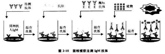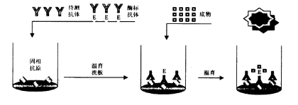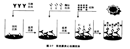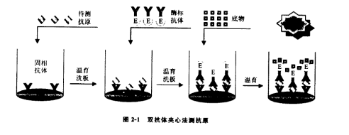 一、概述: 体外诊断试剂企业所提供的产品,本质上讲是为检验医学提供了一种方法学,是一种经过严格验证的,具备追溯或溯源体系的检验方法。因此,提供IVD产品的实质提供了一套可靠的检验方法或程序,那么IVD产品就必然与我们通常意义上所说的检验方法本质上是一致的,有方法学天然存在的优势和必然的缺陷,理解这一点对我们后续理解不同IVD产品有很大帮助,本篇分上、下章节介绍在酶联免疫分析法中常见的反应原理,这些反应原理在整个免疫检测领域是通用的,掌握这些常见的方法学原理及其优缺点,读者能更好地理解免疫测定产品及可能存在的问题。 二、金标准: 提到检验方法,就不得不提“金标准”这个概念,当机体感染病原微生物时,要想使临床医师尽早采取适当措施进行治疗,人们就希望尽快知道机体被何种病原体感染。传统病原体感染诊断一般要经过这样一个过程:首先对可能存在病原体的体液或分泌物进行体外培养,然后再通过形态学、生物学和生物化学特性鉴定,以确定到底是何种病原体。这种方法通常称之为“金标准”。 “金标准”方法经常见于临床研究实验当中,当我们使用新方法学时,应与金标准进行临床符合性对比研究,当我们与对比试剂研究出现不一致时,用“金标准”方法进行判断。但是“金标准”耗时长,效率低而且不是万能的。某些不适合体外培养的病原体很容易培养失败,造成假阴性。如沙眼衣原体、肺炎衣原体和结核分枝杆菌、HCV病毒、HIV病毒。因此,人们希望追求一种更加简便快速的方法进行鉴定,免疫检验方法便应运而生。总的来讲有两类:一类是检测病原体抗原(或核酸)而直接反映病原体感染;另一类是检测机体因对病原体的免疫应答而产生的抗体,间接反映病原体感染的方法。 常见的免疫测定中,因标记物不同而衍生不同的检测方法,如酶联免疫法(HRP/TMB)、化学发光法(ALP/AMPPD、电/钌)、免疫层析法(胶体金、荧光染料、乳胶、胶体硒等)、荧光免疫分析法(荧光染料、时间分辨/铕)。 三、ELISA类型及其原理: ELISA的基础是抗原或抗体的固相化及抗原或抗体的酶标记。在测定时,受检标本(测定其中的抗体或抗原)与固相载体表面的抗原或抗体起反应。用洗涤的方法使固相载体上形成的抗原抗体复合物与液体中的其他物质分开。再加入酶标记的抗原或抗体,也通过反应而结合在固相载体上。此时固相上的酶量与标本中受检物质的量呈一定的比例。加入酶反应的底物后,底物被酶催化成为有色产物,产物的量与标本中受检物质的量直接相关,故可根据呈色的深浅进行定性或定量分析。用于临床检验的ELISA主要有以下几种类型: 3.1双抗体夹心法测抗原 在临床检验中,此法适用于检验各种蛋白质等大分子抗原,例如HBsAg、HBeAg、AFP、hCG等。只要获得针对受检抗原的特异性抗体,就可用于包被固相载体和制备酶结合物而建立此法。如抗体的来源为抗血清,包被和酶标用的抗体最好分别取自不同种属的动物。如应用单克隆抗体,一般选择两个针对抗原上不同决定簇的单抗,分别用于包被固相载体和制备酶结合物。这种双位点夹心法具有很高的特异性,而且可以将受检标本和酶标抗体一起保温反应,作“一步法”检测。双抗体夹心法适用于测定二价或二价以上的大分子抗原,但不适用于测定半抗原及小分子单价抗原,因其不能形成两位点夹心。 3.2 间接法测抗体(测IgG/测IgM) 间接法是检测抗体常用的方法。其原理为利用酶标记的抗人IgG/抗人u链以检测与固相抗原结合的受检抗体,故称为间接法。间接法的优点是只要变换包被抗原就可利用同一酶标抗人IgG/抗人u链建立检测相应抗体的方法。 间接法成功的关键在于抗原的纯度,特别应注意除去能与一般健康人血清发生反应的杂质,例如以E.Coli为工程酶的重组抗原,如其中含有E.Coli成份,很可能与受过E.Coli感染者血中的抗E.Coli抗体发生反应。 (1:40~1:200),以避免过高的阴性本底影响结果的判断。 间接法测定IgM抗体,因标本中一般同时存在较高浓度的IgG抗体,后者将竞争结合固相抗原而使一部份IgM抗体不能结合到固相上。因此如用抗人IgM作为二抗,间接测定IgM抗体,必须先将标本用A蛋白或抗IgG抗体处理,以除去IgG的干扰。 3.3 双抗原夹心法测抗体 3.4 竞争法测抗体 当抗原材料中的干扰物质不易除去,或不易得到足够的纯化抗原时,可用此法检测特异性抗体。其原理为标本中的抗体和一定量的酶标抗体竞争与固相抗原结合。标本中抗体量越多,结合在固相上的酶标抗体愈少,因此阳性反应呈色浅于阴性反应。如抗原为高纯度的,可直接包被固相。如抗原中会有干扰物质,直接包被不易成功,可采用捕获包被法,即先包被与固相抗原相应的抗体,然后加入抗原,形成固相抗原。洗涤除去抗原中的杂质,然后再加标本和酶标抗体进行竞争结合反应。竞争法测抗体有多种模式,可将标本和酶标抗体与固相抗原竞争结合,抗HBc ELISA一般采用此法。另一种模式为将标本与抗原一起加入到固相抗体中进行竞争结合,洗涤后再加入酶标抗体,与结合在固相上的抗原反应。 3.5 竞争法测抗原 小分子抗原或半抗原因缺乏可作夹心法的两个以上的位点,因此不能用双抗体夹心法进行测定,可以采用竞争法模式。其原理是标本中的抗原和一定量的酶标抗原竞争与固相抗体结合。标本中抗原量含量愈多,结合在固相上的