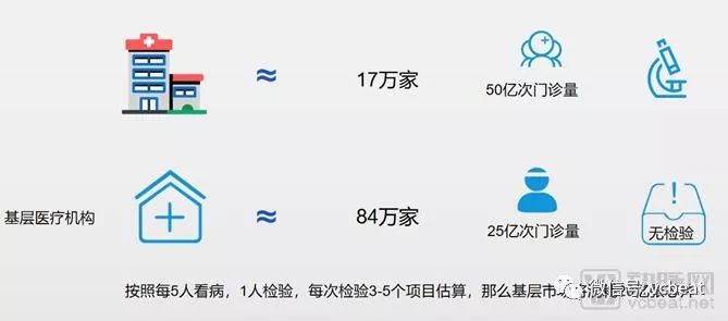 具体到中国分散在中国大地上的91.1万家社区卫生中心、乡镇卫生院、村卫生室、诊所。(数字来自卫生部统计年鉴)其中68%是没有检验能力的,庄斌形象地介绍道:“名字上带有‘院’的,我们认为他是具备一定的检验能力的。而什么所、室的,几乎都没有检验能力。”