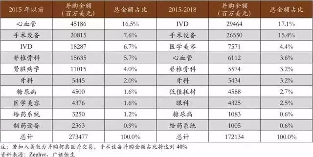主要的医械企业应对技术更替所带来的市场份额下降的方 法主要有两种:其一是不断地买入创新技术企业以降低内部研发的风险,保持技术的相对领先。