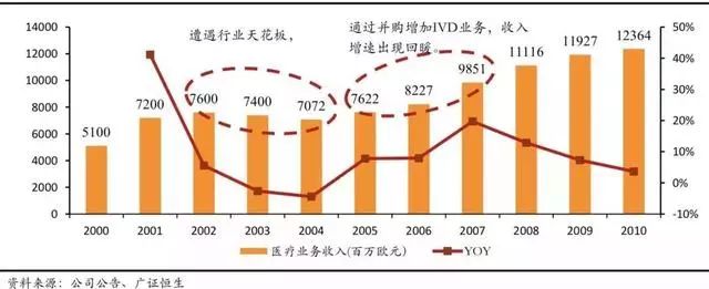 随后西门子开始加强跨界并购,在 2005 至 2006年间先后收购 Diagnostic Products Corporation、Bayer Diagnostics 以及 Dade Behring 以加强 IVD 领域的业务。