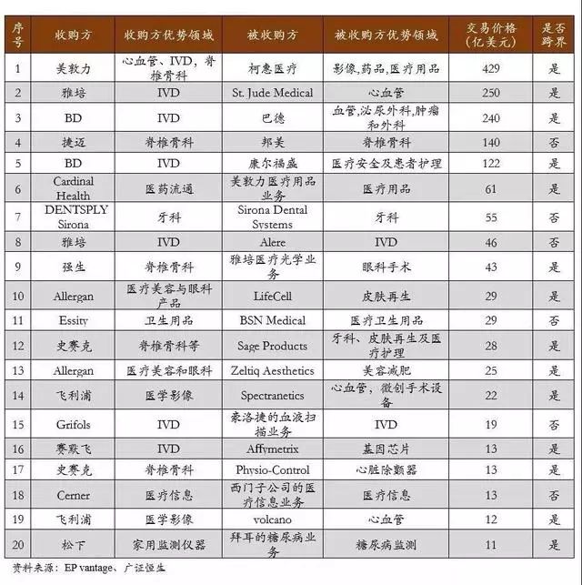 近些年,全球医疗器械行业的并购呈现三大特征: