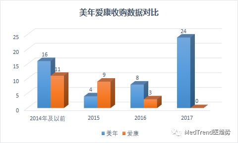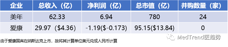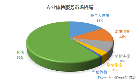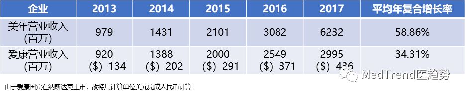 这个价值千亿的市场上,有哪些赛道选手?他们现状如何?未来又有哪些发展方向?医趋势借此机会为大家梳理一下中国体检行业,以期找到些许答案。 公立医院绝对主导 民营体检跑马圈地 体检作为医疗健康的一个重要组成部分,正在日益发展壮大。数据显示,中国体检人数从2011年的3.44亿上升到2018年的5.75亿,同比+67.15%,覆盖率为41.4%左右。 对比美国、日本与德国,其体检覆盖率分别为73.4%、74.2%和96.9%。可见,中国体检市场未来还有很大发展空间,随着城镇化速度的加快,市场量的释放脚步会进一步加快。 目前,中国体检市场仍然是医院占据主导地位,民营专业体检机构诸如美年大健康、爱康国宾等分享市场剩余蛋糕。 随着专业体检机构的不断兼并和收购,专业体检服务市场格局几经变革,大浪淘沙。 曾经的行业领头羊慈铭体检IPO受挫,转投美年大健康怀抱。2017年6月,慈铭体检创始人韩小红以及监事李世海合计0.68亿现金对价退出,标志着属于慈铭时代的彻底谢幕; 而吞并慈铭的美年则摇身一变,从行业老三成为A股上市体检第一股,跑马圈地,疯狂扩张,甚至一度想把行业老二爱康国宾也一口吞下; 2014年远赴纳斯达克上市的爱康国宾则对A股高溢垂涎不已,懊恼自己上错了地方。想抽身回国,却被美年半路截胡,差点被收购掉。张黎刚祭出毒丸计划,拉拢云锋基金等一众小伙伴才勉强稳住了阵脚。 寡头垄断:美年爱康双雄争霸 现如今,专业医疗机构市场有数百家体检机构。但从行业竞争格局来看,第一梯队仅有四家。其中美年2016年并购慈铭成了行业老大,爱康2014年并购华检稳居第二,巅峰对决已经从战国切换成双雄争霸的模式,而竞争则以跑马圈地为主要手段。 作为资本运营高手,俞熔带领下的美年大健康从业绩上,和爱康拉开了足够的距离。而爱康则迎来了成立以来最艰难的日子—亏损0.17亿美元。 跑马圈地,美年收购为王 ▲2017年美年和爱康财报数据对比 2017年 美年:总营收为62.33亿元,同比+102.25%,净利润为6.94亿,同比+35.89%,并购24家,数量是2016年的3倍。收入和利润的暴涨与完成收购慈铭有很大关系。 爱康:总营收为29.97亿元,同比+17.5%,净利润为-1.17亿,同比-53.8%(2016年亏损$0.113亿,折合¥0.78亿),并购0家。连续两年利润下滑与其自建体检中心有很大关系,这种重资产投入成本较高,建成后一般两到三年内才能进入盈利期。 体检机构的发展在医疗健康的高涨热潮下一直如火如荼,而专业医疗机构的发展,比如美年年复合增长率高达58.86%,而爱康也达到了34.31%。 ▲2013-2017年,美年和爱康营收数据对比 另辟蹊径,爱康自建机构 从美年和爱康近年的发展模式来看,两家的高速增长都离不开并购的推动。尤其是美年,大规模的收购让其拥有更多的门店和客流量,在5年之内迅速与爱康拉开足够的距离,营收甚至达到了后者的2倍余。 当然,大规模的收购带来了不可避免的副作用——商誉值过高。2017年财报显示,