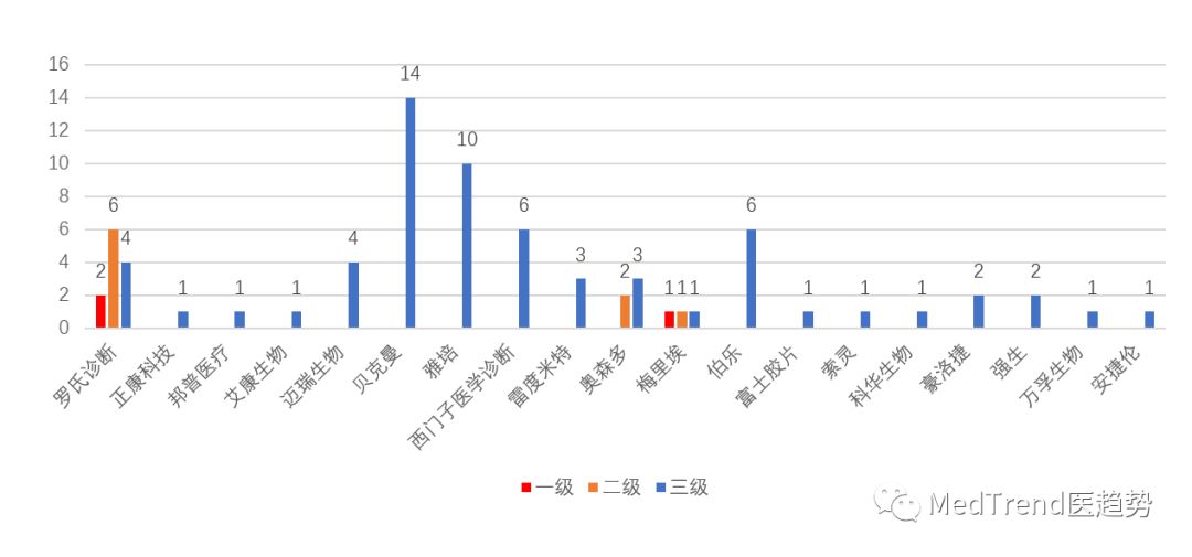 01 召回频频,成为“新常态” 12月4日,NMPA公布了三个体外诊断领域的产品召回,其中出现了全球诊断巨头罗氏诊断的一级召回(召回严重性:一级最高,三级最低)。 公告显示:生产商Roche Diagnostics GmbH对凝血酶原时间检测卡(电化学法)(注册证编号:国械注进20172400980)主动召回。召回级别为一级。 ▲12月4日NMPA公布的诊断领域的召回事件 事实上,根据统计,2018年以来,IVD行业的召回事件频频出现,成为“新常态”。就企业来说,除了罗氏诊断、贝克曼、雅培、西门子诊断、奥森多、梅里埃、伯乐这些外资巨头外,科华生物、迈瑞、艾康生物等本土企业也名列其中。 ▲2018年体外诊断行业的不同级别召回事件数量 *仅统计在中国市场上有产品召回的事件,即如在中国市场召回为0不列入统计范围。(数据截止至12月23日) 如果细细观察召回事件,不难发现外企占了多数。这是因为大部分医疗器械外企已经建立了全球质量体系。一旦在某地,欧洲/美国发现质量问题,就会在全球展开召回,包括中国,哪怕在中国并没有产生任何投诉或者质量问题。 随着中国IVD行业法规的日趋完善,监管日趋严格,越来越多的主动召回事件,标志着行业的逐步成熟。 02 飞检撤销GSP认证,限制经营 如果说主动召回,是监管体系迫使企业自我监督和审查,那么,飞检,则是来自监管体系的“审查”。近几年,监管促使全国范围内飞行检查力度、密度与频次都逐渐加大,部分流通企业和药店的GSP证书陆续被当地食药监局收回,一时间令人谈“飞检”色变。IVD企业也未幸免。