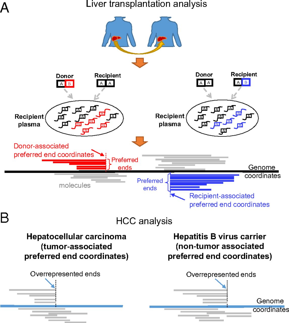 图3. 鉴定cfDNA末端特征的原理示意图 除了最近的PNAS研究外,卢煜明教授研究团队还将DNA片段大小和计数结合起来,开发了一种鼻咽癌检测方法。该方法依赖于对EB病毒DNA的检测,EB病毒DNA像ctDNA一样呈现较小的片段。 此外,来自华盛顿大学的研究人员也表示,他们可以基于核小体定位的推断来确定循环DNA的来源。虽然该团队未特别关注DNA分子的大小,但该方法经过Bellwether Bio商业拆分开发,也依赖于对血液中DNA分子片段化模式的分析。也有多个其他研究团队证明,他们可以通过甲基化模式来区分肿瘤和正常DNA,包括研究全基因组共甲基化、单倍型以及其他模式的方法。 结 语虽然有众多的新检测技术被不断开发出来,但仍有一个问题悬而未决:这些检测方法是否真的在检测独特的癌症信号?还是仅对相同表观遗传或结构特征的不同读数?对于该疑问,奥地利格拉茨医科大学的Ellen Heitzer和Michael Speicher在针对CRUK团队研究的评论中作出了回应。他们强调,我们需要更深入地了解表观遗传机制对不同细胞来源DNA片段大小差异的影响。 从已有研究来看,不管新检测方法的具体目标是什么,通常那些不依赖于基因突变的检测方法都具有明显的优势。此前基于ctDNA的方法专注于检测突变或拷贝数变异,这很好地适应了精确医学的市场对ctDNA检测的主要需求。但事实上,癌细胞释放的绝大多数ctDNA是非突变的,而且在癌症早期检测罕见突变比较困难。因此,考虑开发利用ctDNA多种信息特征的检测方法非常有必要。 希望随着液体活检技术的逐步完善,简单快速、低廉准确的无创检测技术能够早日惠及癌症患者,为生命科学和医疗事业的进步作出贡献。 参考资料: 1.In Race for Blood-Based Cancer Detection, More Teams Turn to Epigenetic and Fragment-Based Analysis 2.Enhanced detection of circulating tumor DNA by fragment size analysis 3. Epigenetically reprogrammed methylation landscape drives the DNA self-assembly and serves as a universal cancer biomarker 4. Preferred end coordinates and somatic variants as signatures of circulating tumor DNA associated with hepatocellular carcinoma |
