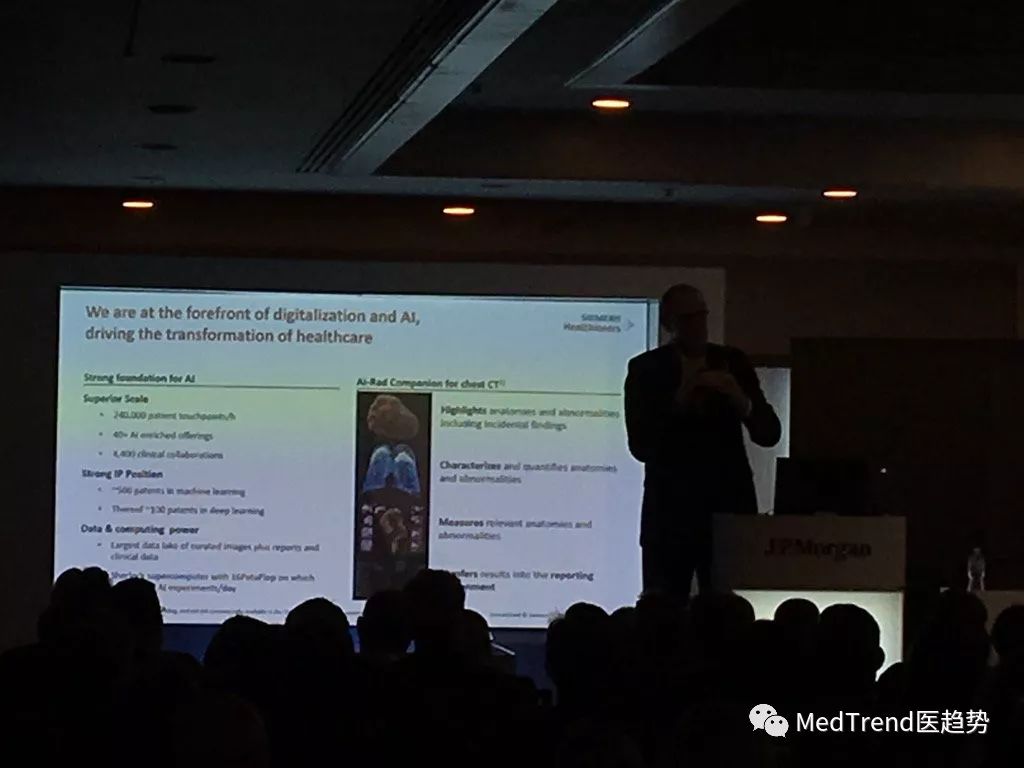 西门子医疗CEO Bernd Montag Atellica免疫检测和化学系统是西门子医疗的关键价值驱动因素。西门子医疗在2018财年达成了Atellica分析仪出货量超过990的目标。该系统及其测试占公司今年报告的40亿欧元诊断收入的55%。 预计到2019财年末将出售3500台Atellica分析仪,到2020财年末将出售7000台Atellica分析仪。其中超过35%的配售为新客户。 西门子医疗CEO Bernd Montag指出,西门子医疗强调在三个主要领域(诊断、成像和高级治疗)开发和实施人工智能。“人工智能并没有取代医生,但是使用人工智能的医生开始取代不使用人工智能的医生。最后,每个医生都会受到人工智能的影响。” 他说,西门子医疗所服务的诊断市场通常可以看作是稳定的。但另一方面,行业正经历着分化,客户越来越多地在寻求即时诊断的同时,又寻求大型集成系统。而Atellica能满足这些希望转向更集中的解决方案并提高生产力的客户。 ▲西门子处于人工智能成像的最前沿 Illumina CEO Francis DeSouza