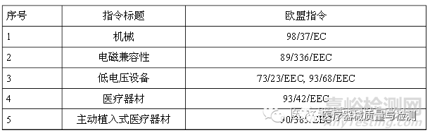 医疗器械指令列表 欧盟指令中涵括许多基本保健及安全规定,以及评估产品符合规定程度的订定程序。每项指令在区域性标准制订机构所订定的调和欧洲标准中均会具体说明详细的基本规定。