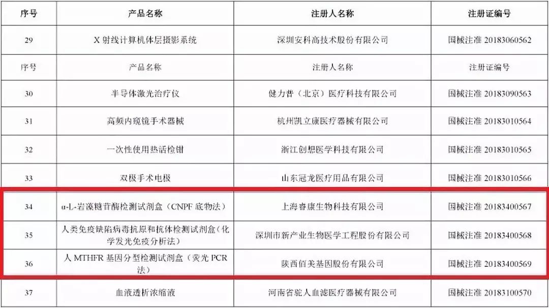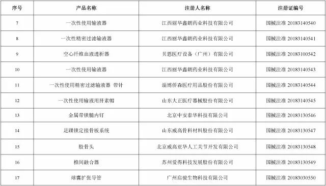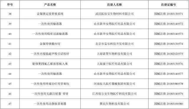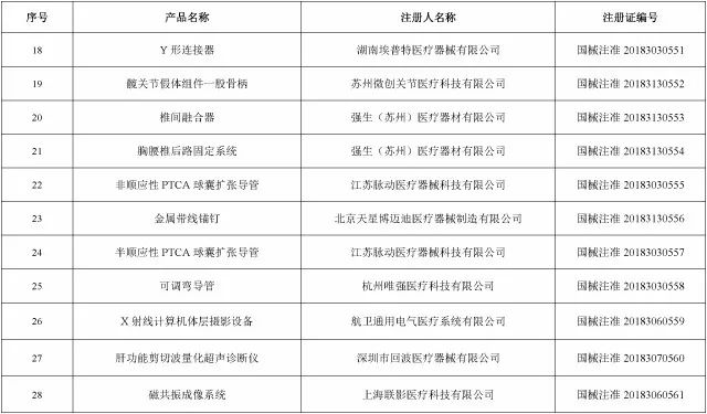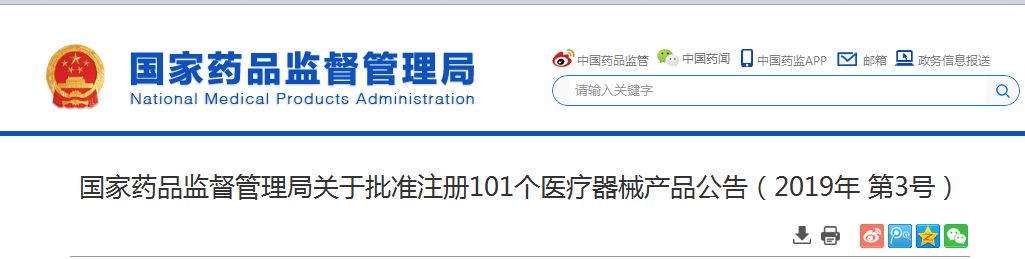2018年12月,国家药品监督管理局共批准注册医疗器械产品101个。其中,境内第三类医疗器械产品66个,进口第三类医疗器械产品17个,进口第二类医疗器械产品18个(具体产品见附件)。