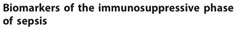 由于败血症的发病原已经随时间演变了,对败血症已经试了不同治疗方式,不同的生物标志物已经被用于败血症的诊断和监视治疗。1980年代的最初关注是早期较高炎症阶段,和大剂量皮质类固醇是败血症治疗的重要组分。TNF、IL-1β和IL-6,这三个促-炎症的细胞因子,产生SIRS,以及CRP,该蛋白组固定下来的成员,被IL-6上调在肝脏合成,所有被研究的为潜在的生物标志物。在1990年代,研究者发现了降钙素原(PCT)的水平,这是降钙素激素的前提,在细菌感染病人中升高,它成为另一个潜在的生物标志物。CRP和PCT二者的升高被加到2003年对败血症定义的更新。然后,在过去的10年早期,深入研究严重败血症和败血症休克的“目标导向”的治疗,使用了升高的乳酸水平以指导治疗[14],得到了在监视处于形成败血症的病人的乳酸水平,成为标准做法。近期,作为治疗靶向,败血症的抗炎症阶段已经开始进入临床试验,试图检出与免疫系统下调关联的变化的新生物标志物也在研究中。
