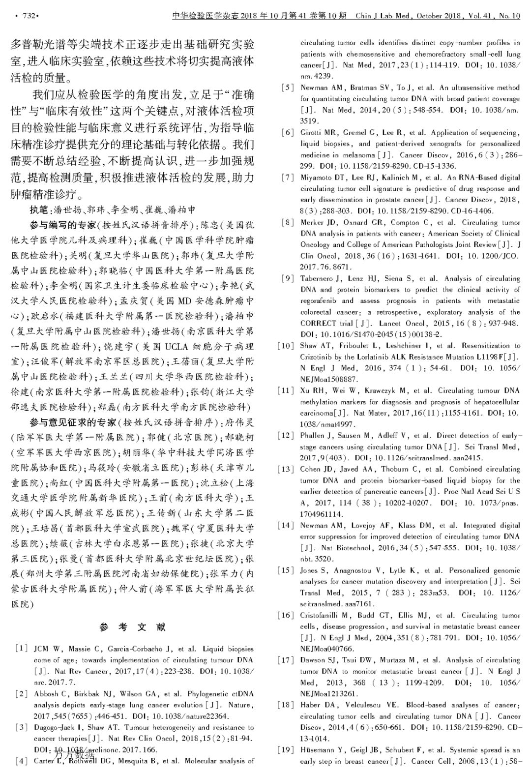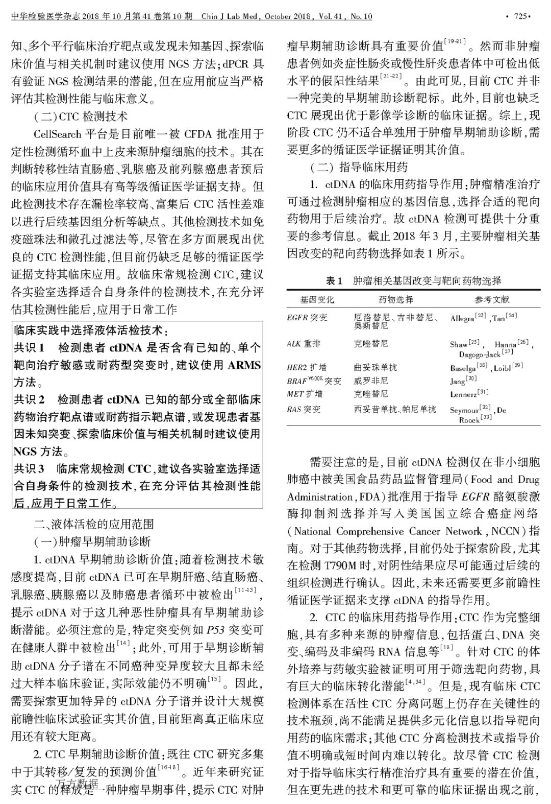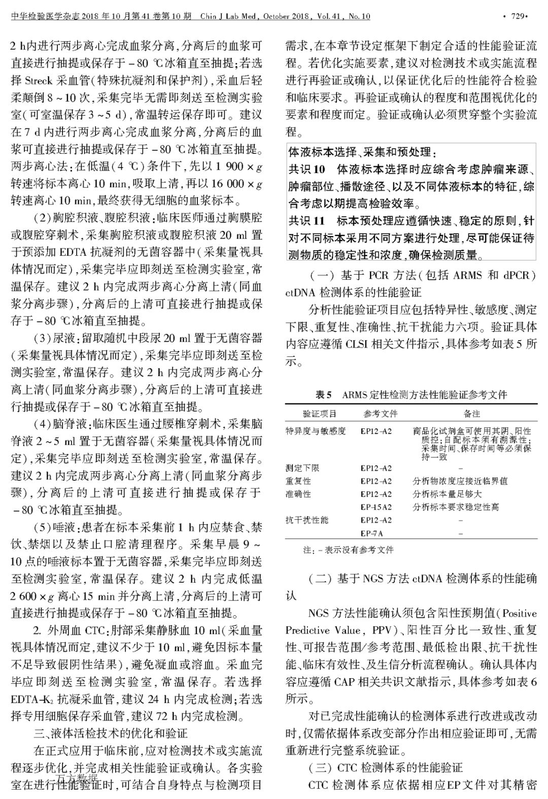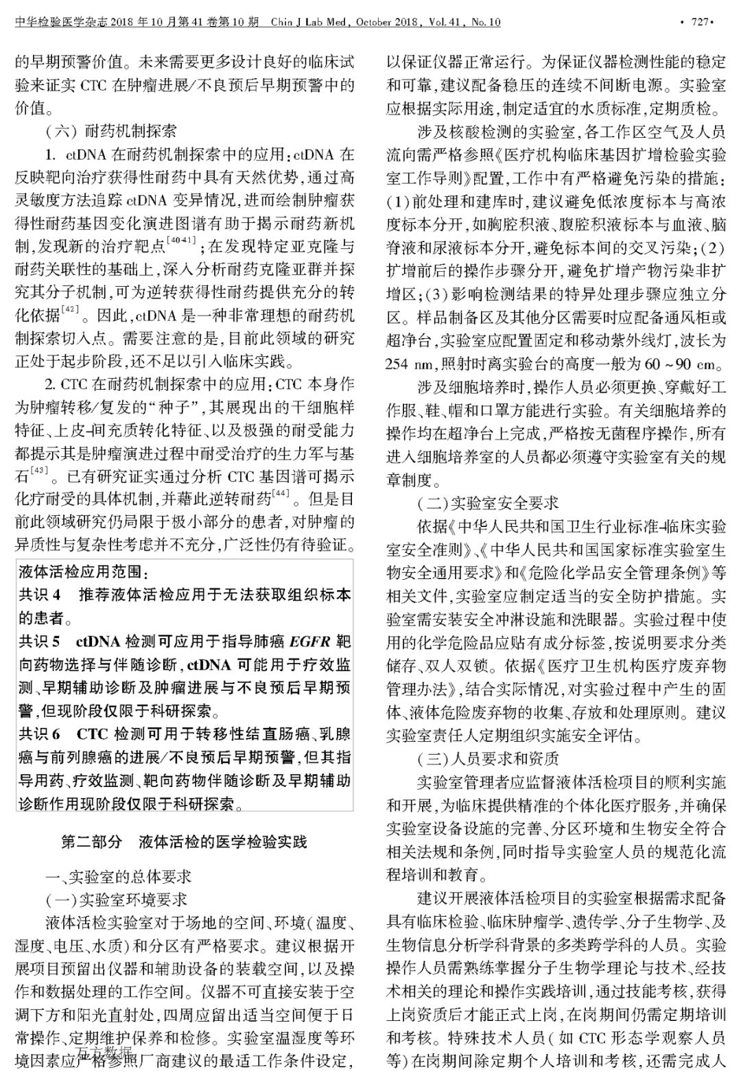 液体活检在临床肿瘤诊疗应用和医学检验实践中的专家共识