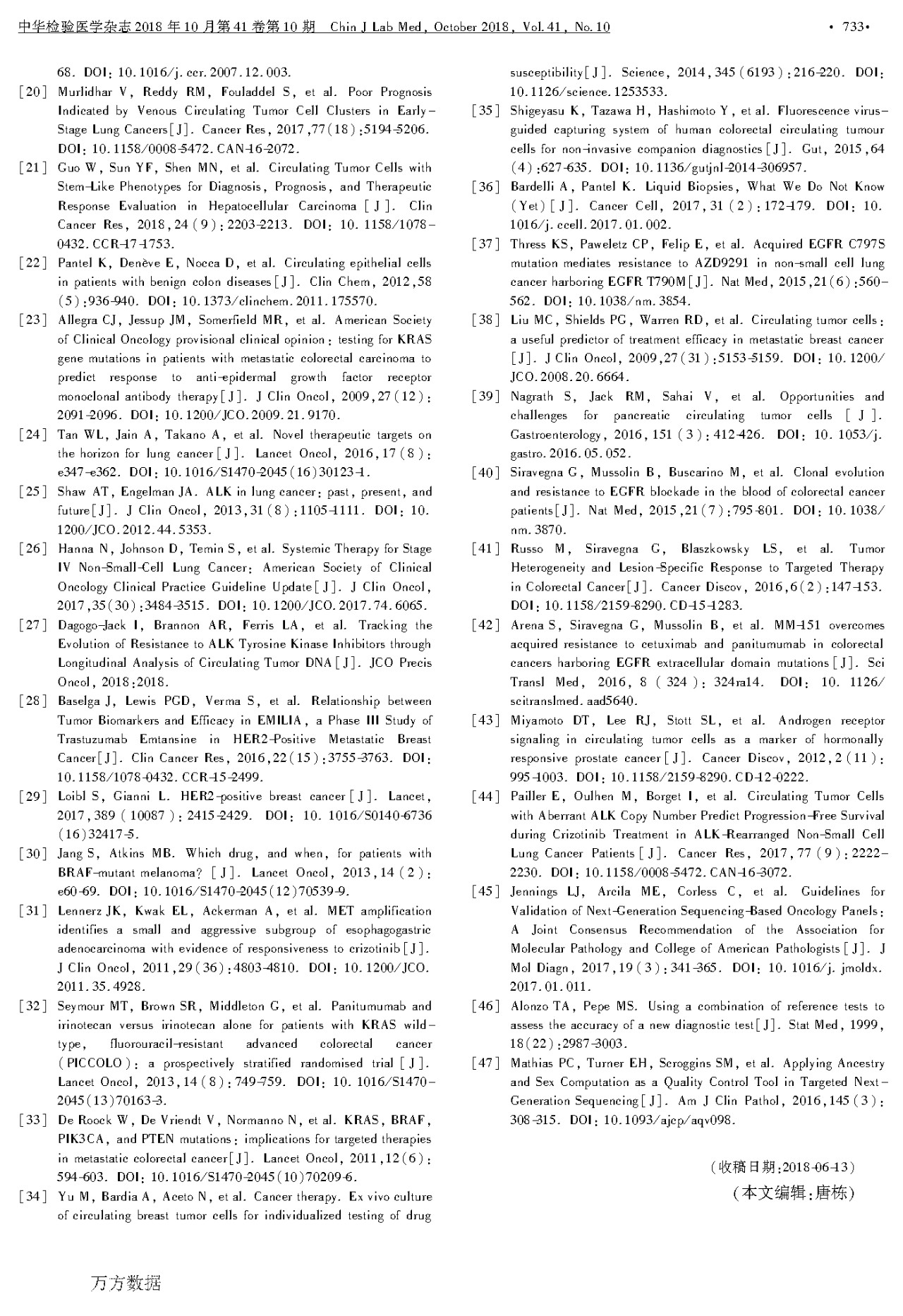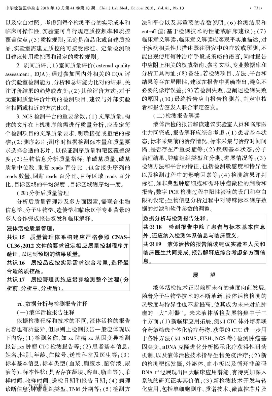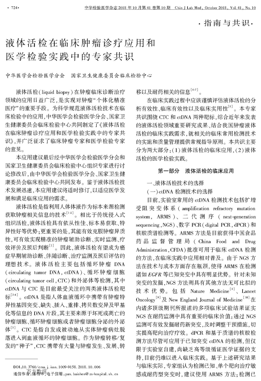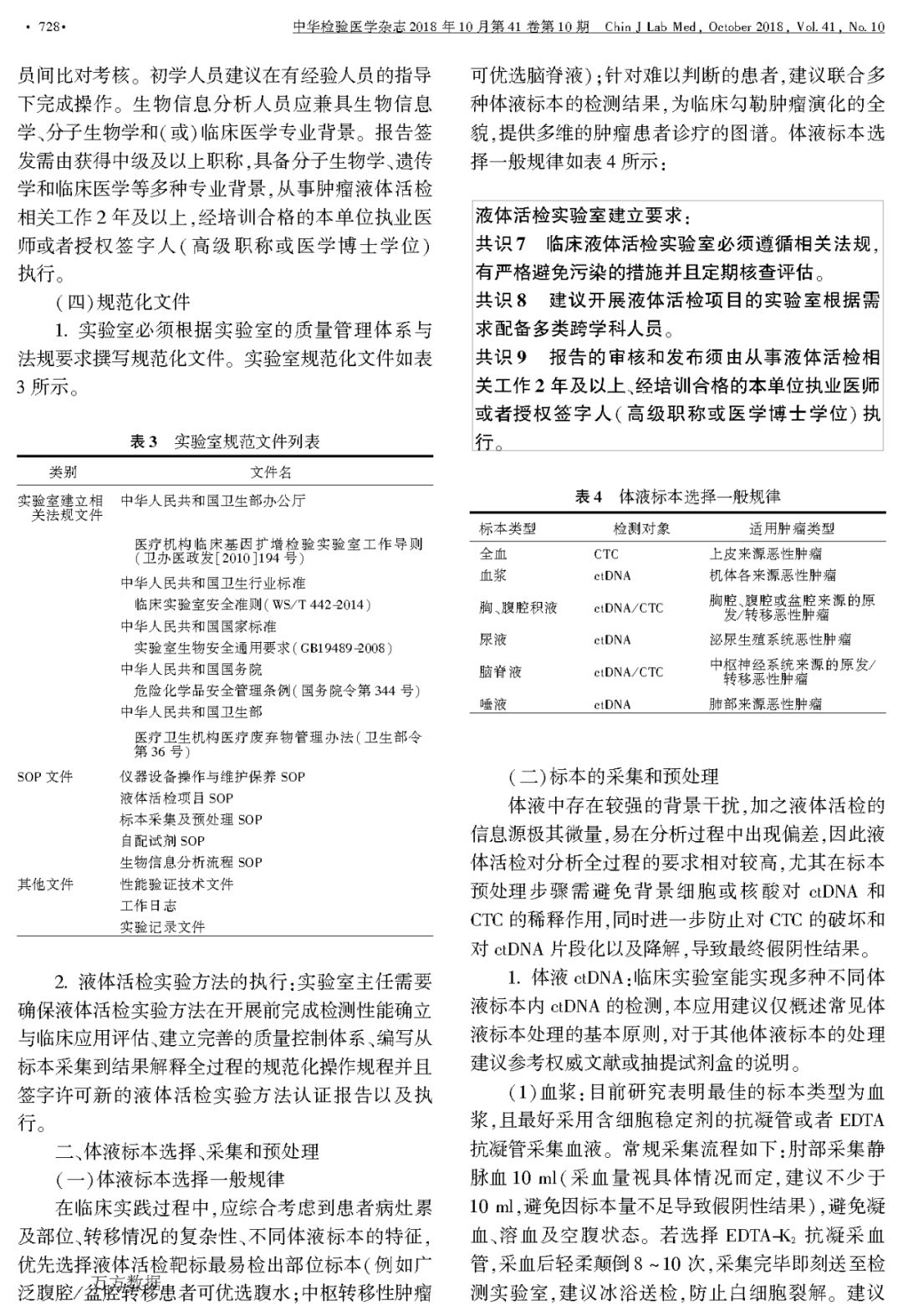 液体活检在临床肿瘤诊疗应用和医学检验实践中的专家共识