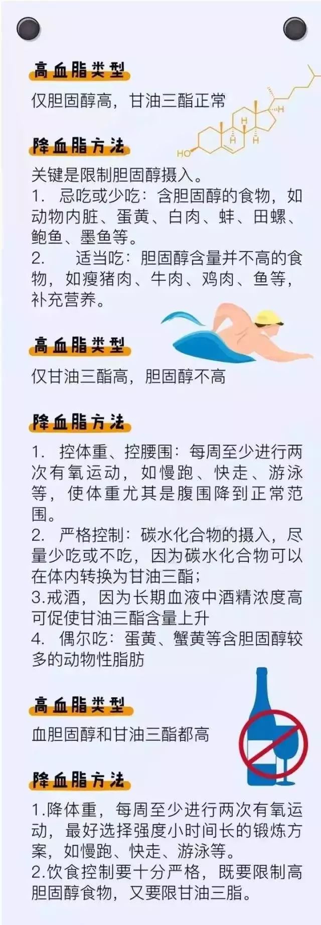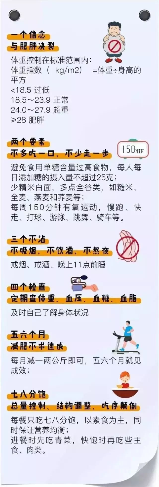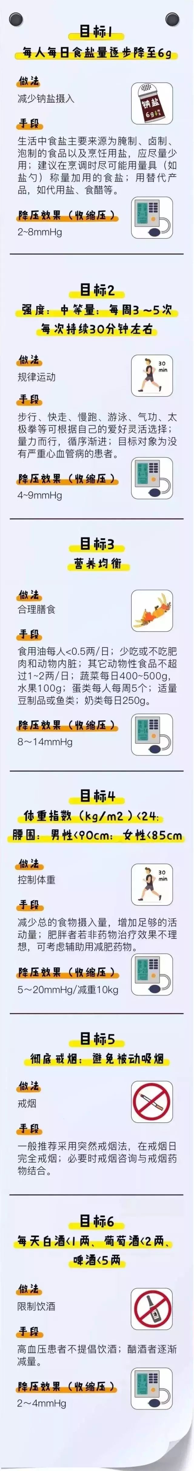 来源:检验医学,健康时报,人民日报,健康早6点,顺德中心血站 血压、血脂、血糖、尿酸是目前衡量我们身体状况最基本的四个指标。但很多人都不知道,这些指标到底多少是合格的? 血压 低了供血不足,高了损伤血管器官 血压过低:会导至身体各部分的血液、氧气供应不足,产生眩晕、无力、眼前一黑,甚至晕厥,同时也会增加卒中风险。 血压过高:过高的血压会伤害各个器官组织,包括血管、心脏、肾脏等,也会增加卒中风险。 如果血压超出标准,如何判断自己是不是已经高血压了呢?请参考下面这张表。 高血压诊断的一般参考(mmHg) 数据来自:中国高血压国家中医临床研究基地主任、首席专家杨传华 另外,专家提醒,血压测值还受多种因素的影响,如情绪激动、紧张、运动、气温等,一次测量不能盲目作为诊断结果。 血糖 低了伤害大脑,高了伤害器官 血糖过低:会给患者带来极大危害,轻者引起记忆力减退、反应迟钝、痴呆、昏迷,直至危及生命。部分患者诱发脑血管意外,心律失常及心肌梗死。 血糖过高:会引起大血管病变。糖尿病性大血管病变是指主动脉、冠状动脉、脑基底动脉、肾动脉及周围动脉等动脉粥样硬化。其中,动脉粥样硬化症病情较重、病死率高,约70%~80%糖尿病患者死于糖尿病大血管病变。 同样,血糖也不是一成不变的,随着进食、食物的消化和吸收,血糖也会有所变化。所以,一般而言,会有空腹血糖、餐后血糖两个数值作为参考。 血糖参考值及诊断标准(mmol/L) 此外,对于糖尿病患者也有分级,分为轻度糖尿病、中度糖尿病、重度糖尿病,具体参考数据如下: 轻度糖尿病:7.0~8.4mmol/L 中度糖尿病:8.4~10.1mmol/L 重度糖尿病:>10.11mmol/L 血脂 低了营养不良,高了危害健康 血脂过低:很多人以为血脂越低越好,其实血脂过低和高血脂一样危害健康。研究显示,低胆固醇摄入水平(150~200mg/d)人群的心脏病死亡人数是高胆固醇摄入水平(>300mg/d)的2倍。年龄超过70岁的老年人,胆固醇水平低于4.16mmol/L时,其发生心脑血管急性事件的危险性与胆固醇水平>6.24mmol/L相当。 血脂过高:如果血脂过多,容易造成“血稠”,沉积在血管壁上,逐渐形成小“斑块”,并日益增多、增大,逐渐堵塞血管,使血流变慢,严重时还会中断血流。就像热水器水管中的水垢越积越多,最终堵塞水管,水流越来越慢,严重时流不出水来一样。 血脂一般参考值(mmol/L) 尿酸 高了引起高尿酸血症、痛风 临床上,当血尿酸>390μmol/L,才可诊断为高尿酸血症。大多数痛风患者的尿酸>420μmol/L。 尿酸的一般参考值 上面几张对照表是对自己身体健康情况的一个参照,让我们更加了解自己的状况。然而,当我们不幸患了“四高”(高血压、高血糖、高血脂、高尿酸),又该怎么办呢? 这四张健康教育“处方”,助你防四高、降四高,要想身体倍棒,从健康生活方式开始! 高血压是最常见的慢性病,也是心脑血管病最主要的危险因素。想要降血压,快给自己定下这6个小目标吧! 什么是高血脂?目前,国内一般以成年人空腹血清总胆固醇>5.72mmol/L,甘油三酯>1.70mmol/L,诊断为高脂血症。将总胆固醇在5.2~5.7mmol/L者称为边缘性升高。 有了高血糖别担心,用“一二三四五六七八”赶跑它。 国际上将高尿酸血症的诊断定义为:正常嘌呤饮食状态下,非同日2次空腹血尿酸水平男性>420μmol/L,女性>360μmol/L。 想要降尿酸,快记住下面几个数字。 |