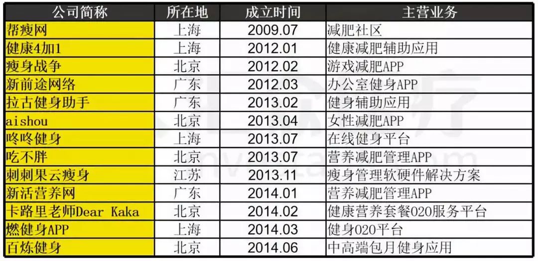 表.死亡的医药物流类企业 4) 减肥瘦身:属互联网的“非”互联网产品 从死亡榜单可以看出减肥瘦身领域近半数的企业主营业务为APP类产品,少量企业为O2O平台。