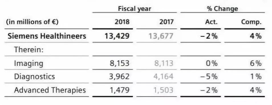 根据财报(受IPO影响,统计区间为2017.12.1-2018.9.30),西门子医疗实现营业收入为134亿欧元,同比增长4%,公司实现全年目标。