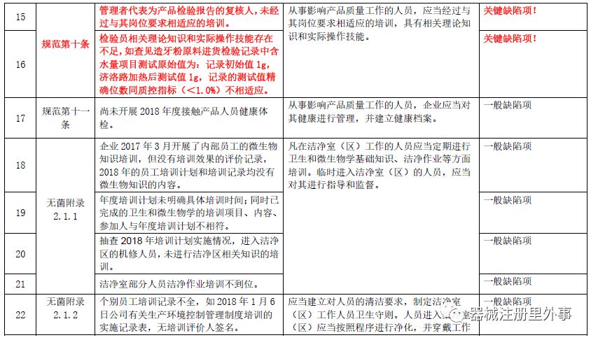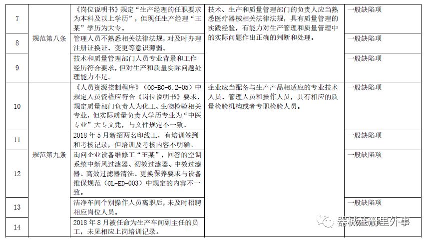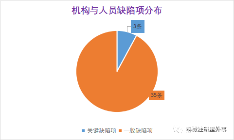 2018年,所有医疗器械生产企业都要求符合医疗器械生产质量管理规范的要求,是医疗器械GMP全面铺开的第一年。这一年国家局共飞检了88家企业,涉及缺陷项754条,其中与机构与人员相关的缺陷项共有38条,包括一般缺陷项35条,关键缺陷项3条。