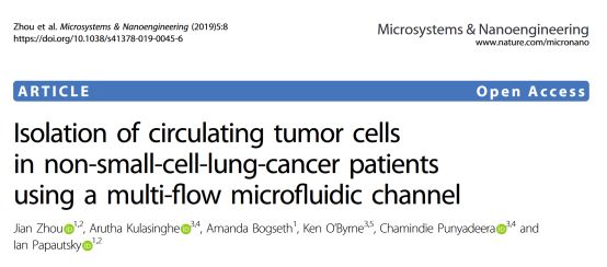 虽然此次实验的样本数较少,但从小样本量的分析数据便可窥见此系统的可靠性,接下来的工作将是通过大样本量来进一步验证该系统的可靠性,并为最终走向临床应用提供可靠的实验数据。 参考文献 KenO’Byrne, Chamindie Punyadeera, Ian Papautsky. Isolation of circulating tumor cellsin non-small-cell-lung-cancer patientsusing a multi-flow microfluidic channel |