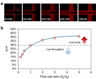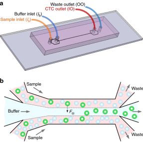 近日,来自伊利诺伊大学芝加哥分校(UIC)和澳大利亚昆士兰科技大学的研究小组开发了一种新型的多流微流体(MFM)系统,其可分离高纯度的循环肿瘤细胞。这一系统内的微通道利用细胞的惯性迁移。细胞的侧向迁移在很大程度上取决于这一系统内微通道中细胞的大小。由于其利用的是循环肿瘤细胞的物理特性,因此无需利用亲和力和其他黏附活性手段来进行繁琐复杂的分离工作。这一系统最大的特点是实现了对来自白细胞的循环肿瘤细胞进行了无标记分离。 在完成系统设计与建造后,研究人员对系统的流出率和流量等分析数据进行了详细研究。当研究人员将10个肺癌细胞加入5毫升健康血液样本再通过他们的设备运行检测血液时,它能够使用微流体装置发现原先93%的癌细胞。先前开发的分离循环肿瘤细胞的微流体装置仅具有50-80%的回收率。 此外,当研究团队运行8个非小细胞肺癌患者血液样本时,他们能够利用微流体装置从6个样本中分离出癌细胞。除了高效率和可靠性外,这套系统仅需少量血液样本稀释液也是其另一个亮点。利用微通道分析8个NSCLC患者和5个健康受试者的血液样本时,研究者可从6名患者的样本中分离出循环肿瘤细胞,且每毫升血液中最多检测出78个癌细胞并且在健康对照中未发现癌细胞。因此,这套系统显示出超高的分离效率(> 99%)和分离纯度(> 87%)。