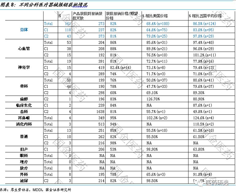 总的来看,大部分C类报销的医疗器械需要150-250天左右进行报销审批,平均报销价格也低于参考国家平均水平,一部分企业会被Chuikyo调整到报销待遇更低的A组和B组,而通过企业大部分会得到一个期望报销价格80%左右的报销水平。