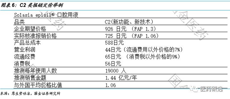 在每一次价格改订中,同样会参考最新采集的国外平均价格FAP: 如果新产品报销定价高于FAP两倍以上,日本报销价格应该降至FAP平均价格两倍。 当日本现有报销价格高于1.3倍外国平均价格(对于应对未解决临床需求/适用人群稀少的医疗器械可以放宽至1.5倍),将建立时间表逐步将价格下调。 此外,这一计算体系对于美国FDA新批准或者美国尚未获批的医疗器械也有特殊加成,这一安排是在鼓励创新医疗器械:考虑到美国的医疗器械价格远高于欧洲和澳洲,如果新医疗器械进入日本早于其他欧洲国家,那么将计算平均价格时更为有利。