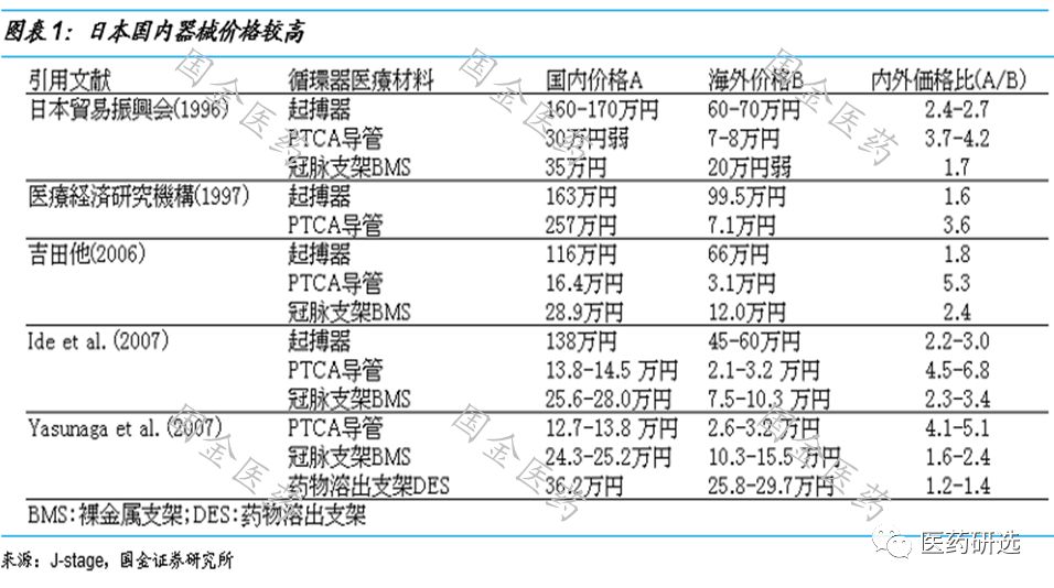在这一环境下,90年代到00年代早期日本很多品类医疗器械价格是国外水平的2-4倍,其中心血管耗材等治疗性器械更是溢价“重灾区”。商务习惯是原因之一 ,但更重要的是日本医疗的两大体制特点导至了医疗器械企业成本偏高: