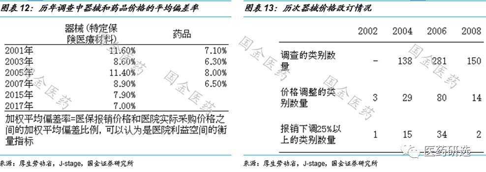 上述“医院议价+价格再修订”的调整体系是非常有效的,以90年代日本国内与国际价格差距非常突出的两种医疗器械为例,2008年PTCA球囊和双腔起搏器的报销价格均已经下降到了21世纪初价格的50%左右。