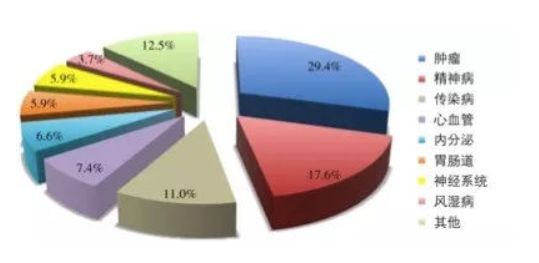 随着医学的发展,人们发现遗传变异在心血管疾病中也扮演着重要的角色,以及心血管疾病患者的合理用药,都需要基因组学研究和大数据的积累。心血管疾病的诊断已不限于胶体金,免疫,生化等方法,精准诊疗的时代已经带来。根据个体携带的遗传信息,"量身定做"个性化药物,促进安全用药并改进疗效成为心血管领域的发展趋势。在2015年FDA批准的带有基因标签的药物就有90个,肿瘤领域数量最多,心血管疾病居第4位。