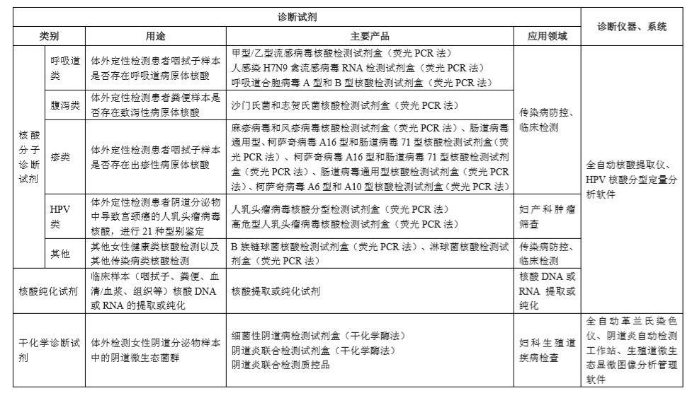 硕世生物主营产品为核酸分子诊断试剂、核酸纯化试剂、干化学诊断试剂及检测仪器。公司自主研发的HPV分型定量检测系统创新突破实现了HPV检测的“分型+定量”;自主研发的阴道炎检测试剂配合阴道炎自动检测工作站组成了智能化的阴道微生态系统,有效改善了传统手工检测依靠经验、漏检误判率高等状况。