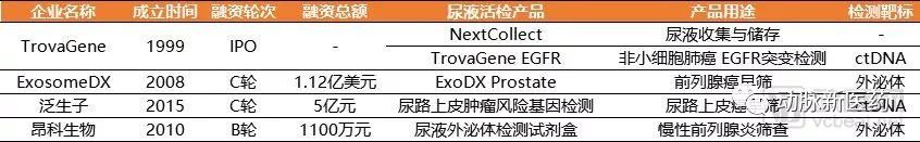 部分企业开始布局,检测方向各不相同 图:涉足尿液液体活检的部分企业信息