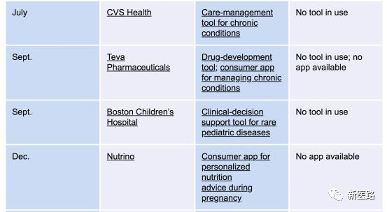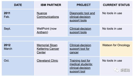 下表为IBM 在医疗方向专案与目前的进展: