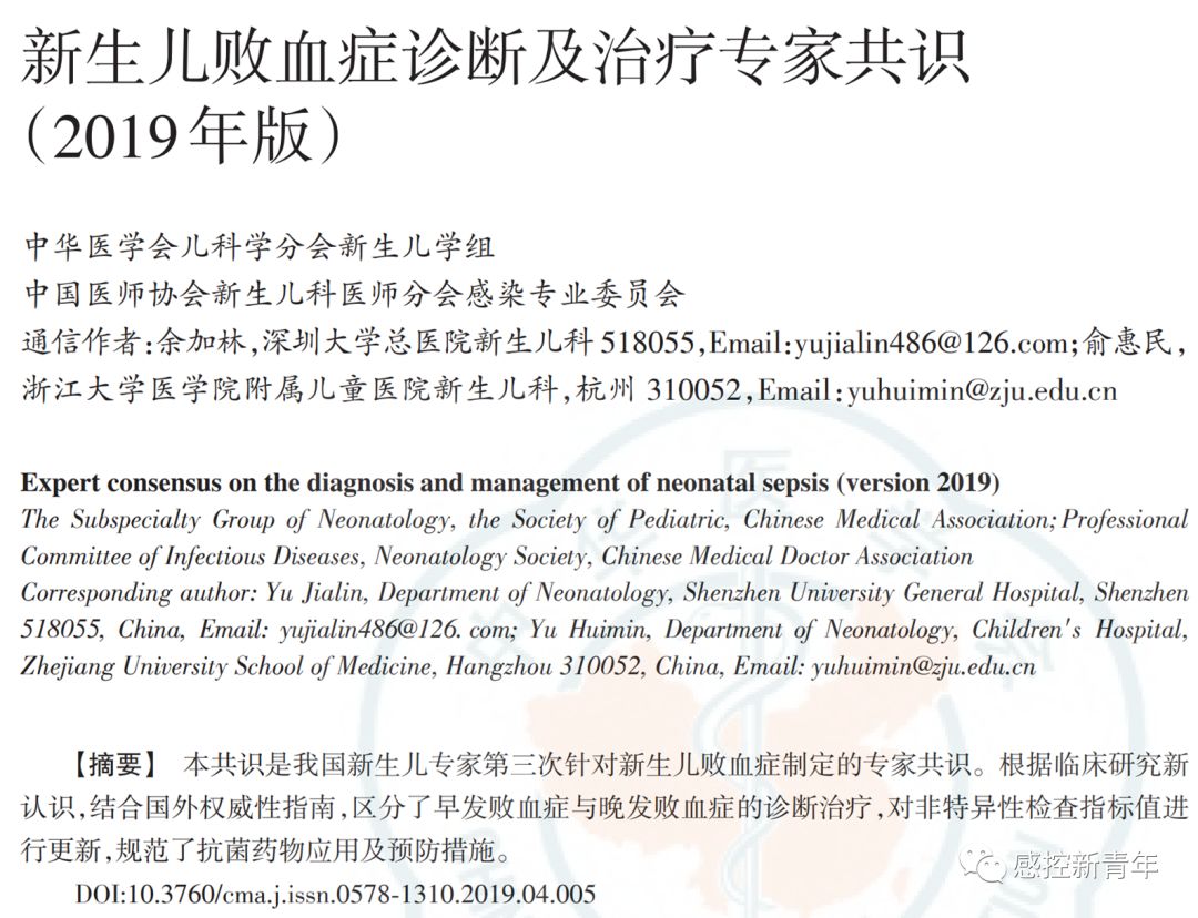 2019年版丨新生儿败血症诊断及治疗专家共识